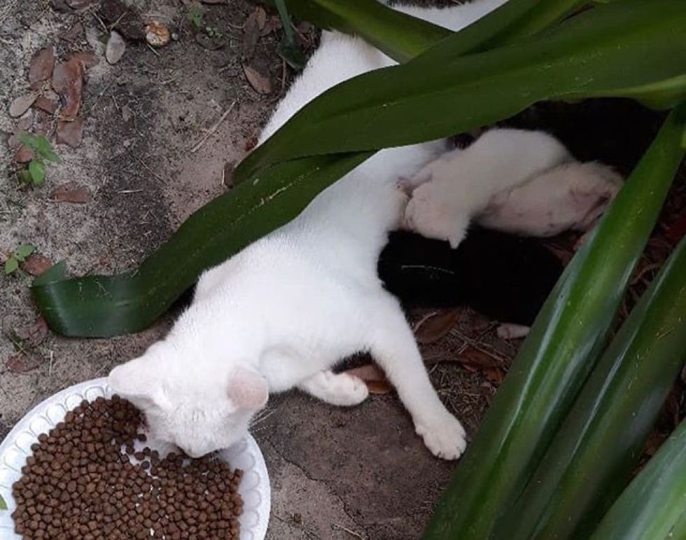"If you find a cat nursing her babies outdoors, it helps tremendously to provide mama with food, water and some kind of shelter, so that she can nurse her babies in safety, and she doesn't have to wander very far in search of food," the rescue said.