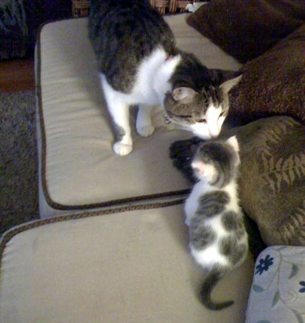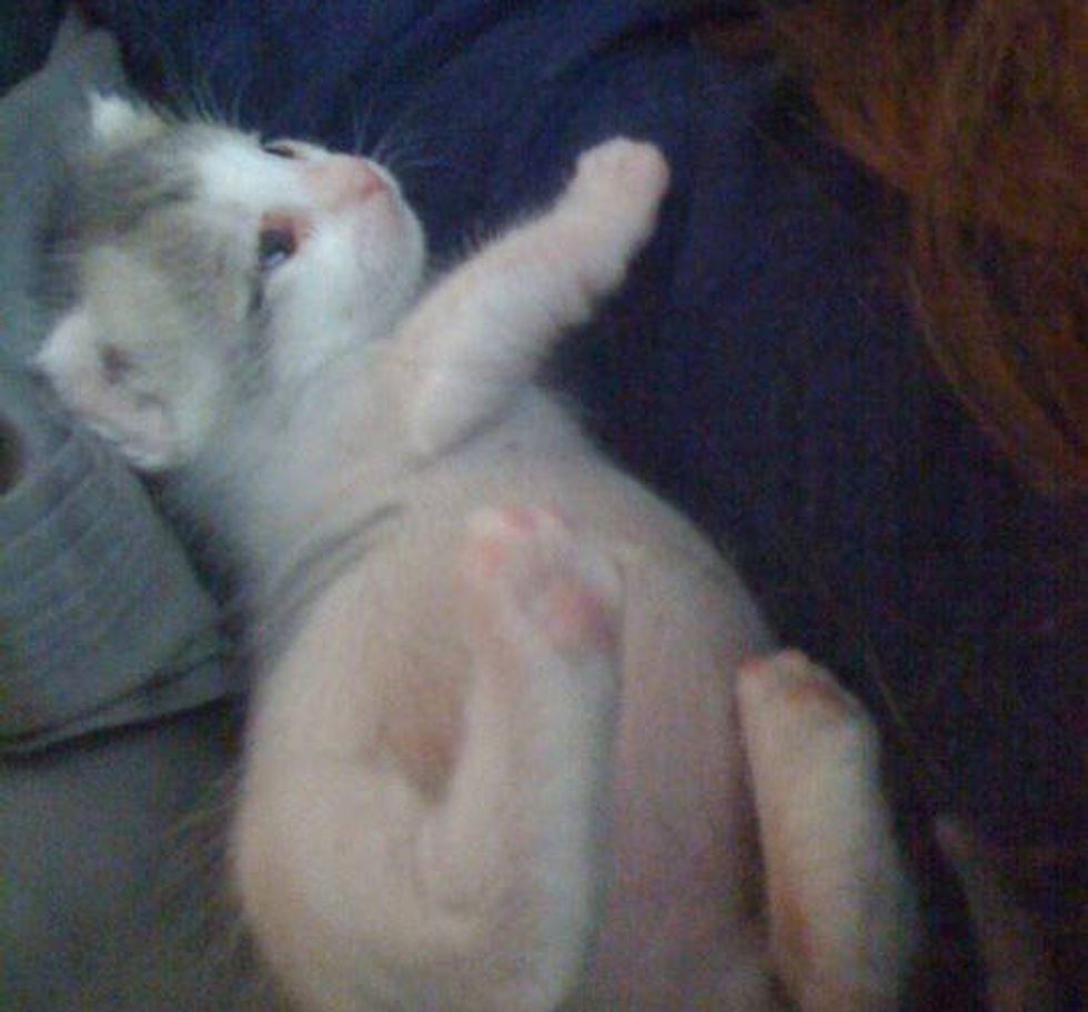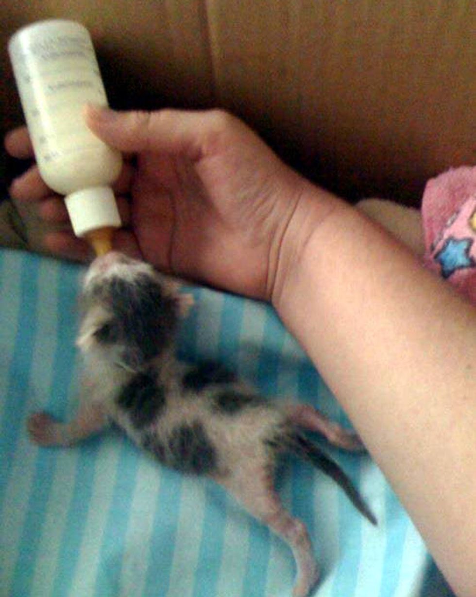 "A friend of mine found an abandoned kitten outside her house; its was only about 2 days old at max...we bottle fed her and the whole bit. 2 years later she is doing great," said imgur user capewoman8.