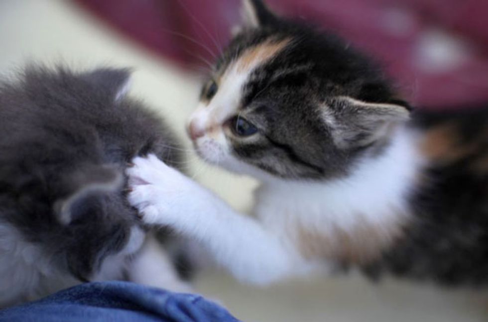 Arietta may be tiny, but she is already showing lots of attitude. Though both of her polydactyl brothers have bigger paws, she certainly has the most spunk of the three.