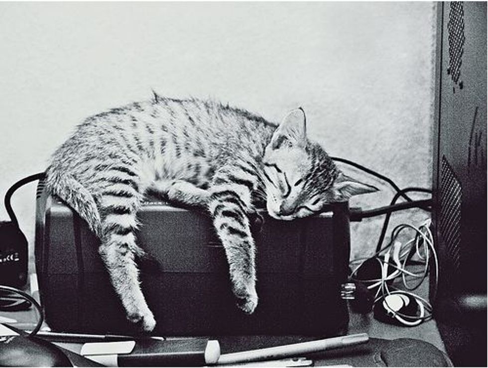 Everyone took to her right away. Her most famous and lovable habit is the need to bite everyone's fingers, regardless of where she was or who she was biting. Oh, and she loved, loved warm places. I think it came with a lack of a mother's touch. Often, we'd find her cuddled near the fridge, or sleeping on the UPS - soaking up the heat. Her other favorite spots to sleep on were the adapter or the laptop, whichever was more convenient for her to climb on to.