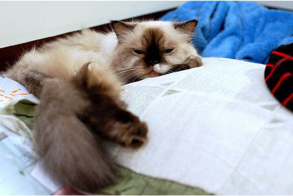 Bao is the oldest member of Faureing's family. She lives with six other frisky felines and loves sharing her parents' bed with Flik the cat.