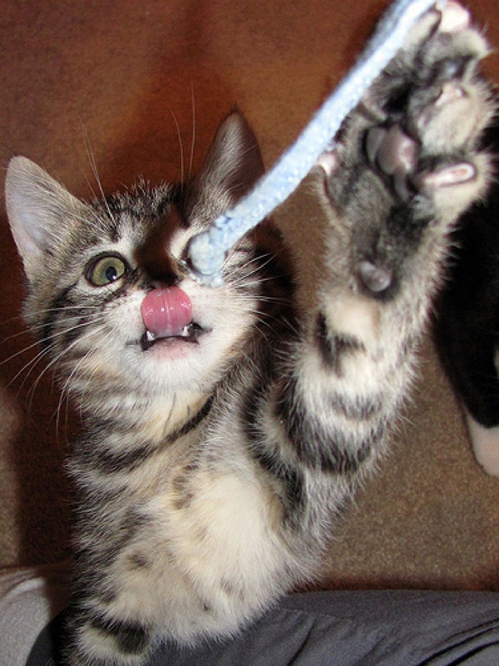 "Basil loved her cord mice, and she would happily join in the scampering and play with the other nine kittens in the house."