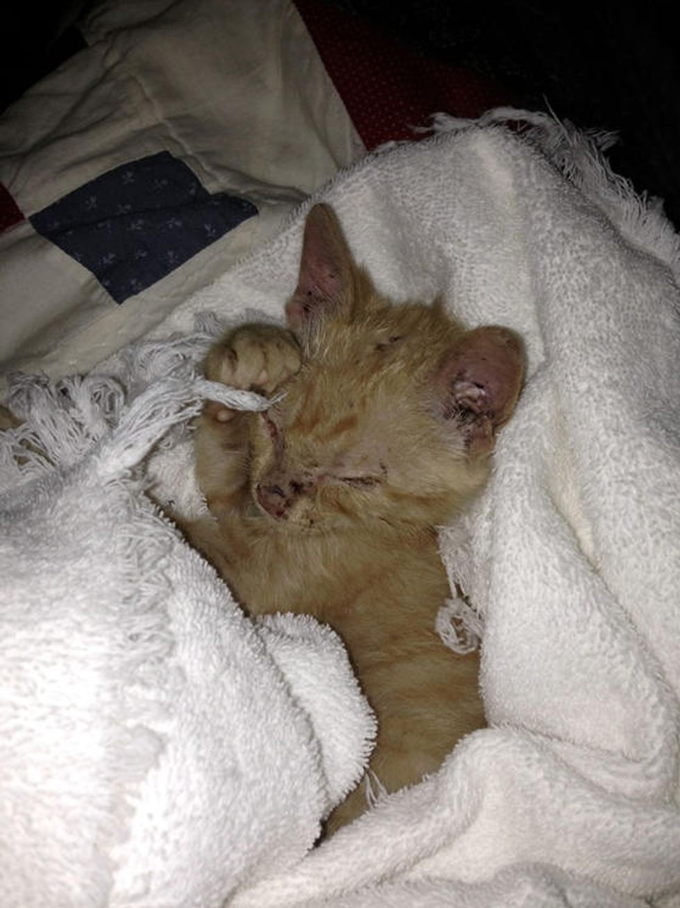 "Maggie was licking it to stimulate its bathroom needs but it's actually been using the box fine. We've taken care of fleas, ear mites and cared for the grazes."