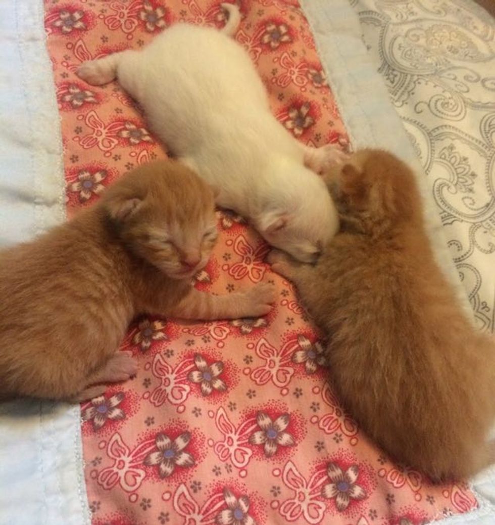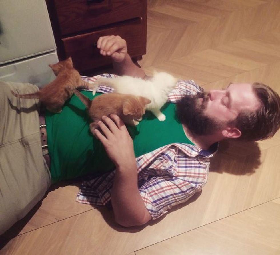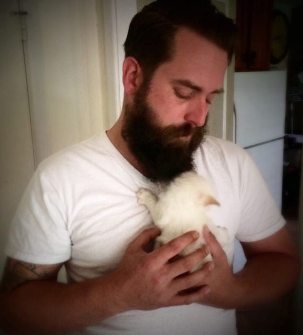 Three tiny kittens were born to a stray cat, and this bearded guy became the father they never had.
