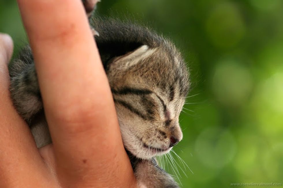 They were not able to find anyone to adopt the kitten nor could they locate any animal shelter, Roeselien suddenly remembered seeing a mother cat who just gave birth to a litter of kittens near her apartment. She decided to give it a try and see if the cat would accept this orphan baby. She laid the baby down in front of the cat mother, then she saw the cat gently pick up the kitten, grabbing her like the way any mother cat does to their children, and quickly she ran home. Knowing the kitten finally had somebody to look after her, Roeselien felt a sigh of relief [see the orphan kitten pictures below].