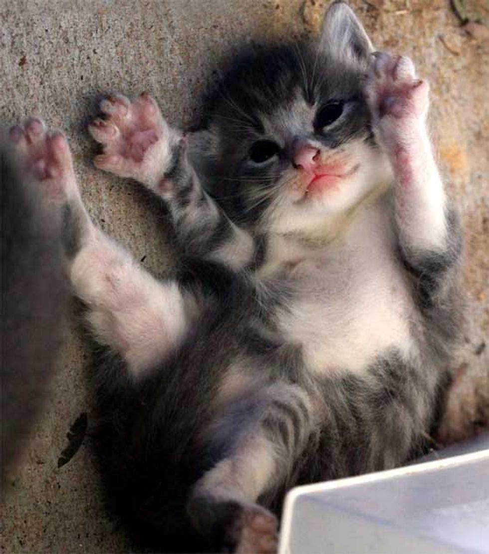 Those tiny paws are 100% kissable. Little kitty was brought to a foster home until he grew big enough for adoption. He touched the hearts of a family and is now living happily in his forever loving home.