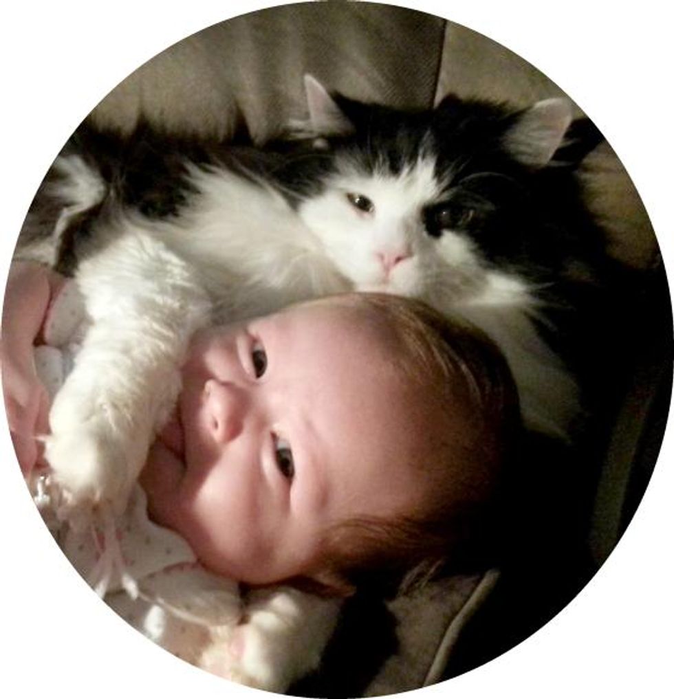 Scarface is a gentle, laid back cat who has a big heart for everyone in the family especially his little human sister Luna. He purrs and sits there by her side like a little guardian angel.