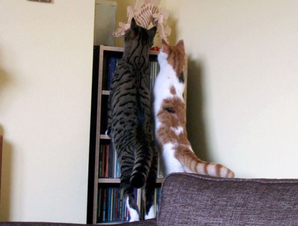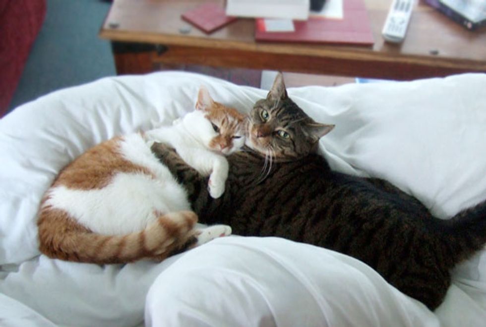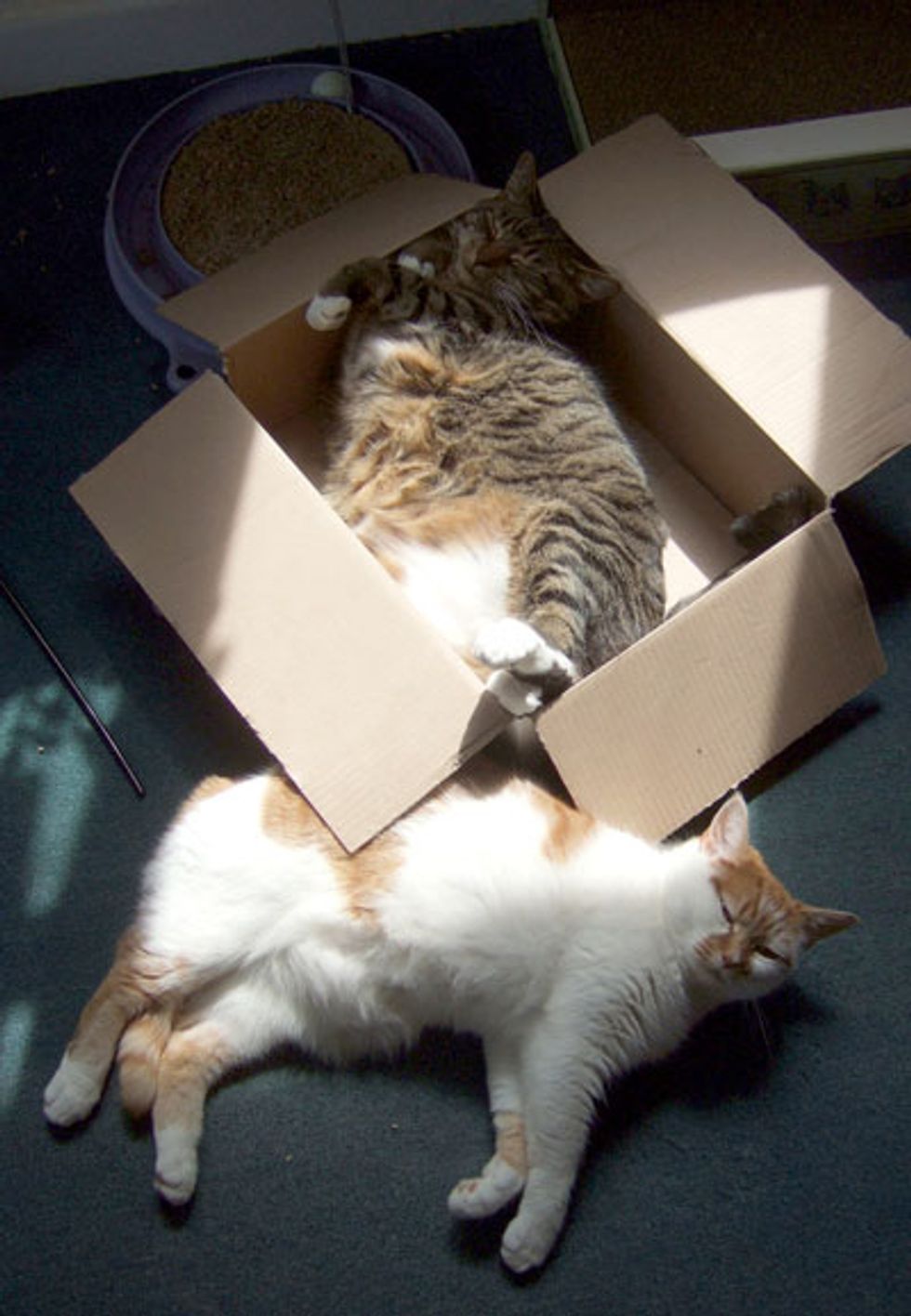 Captain takes the box, Saffron likes to stay outside, but they never leave each other.