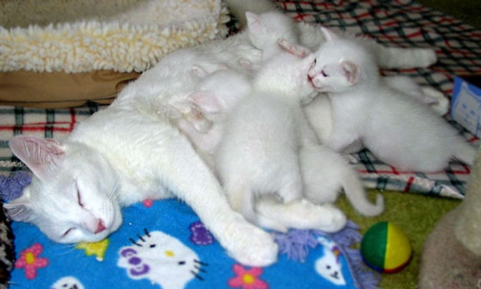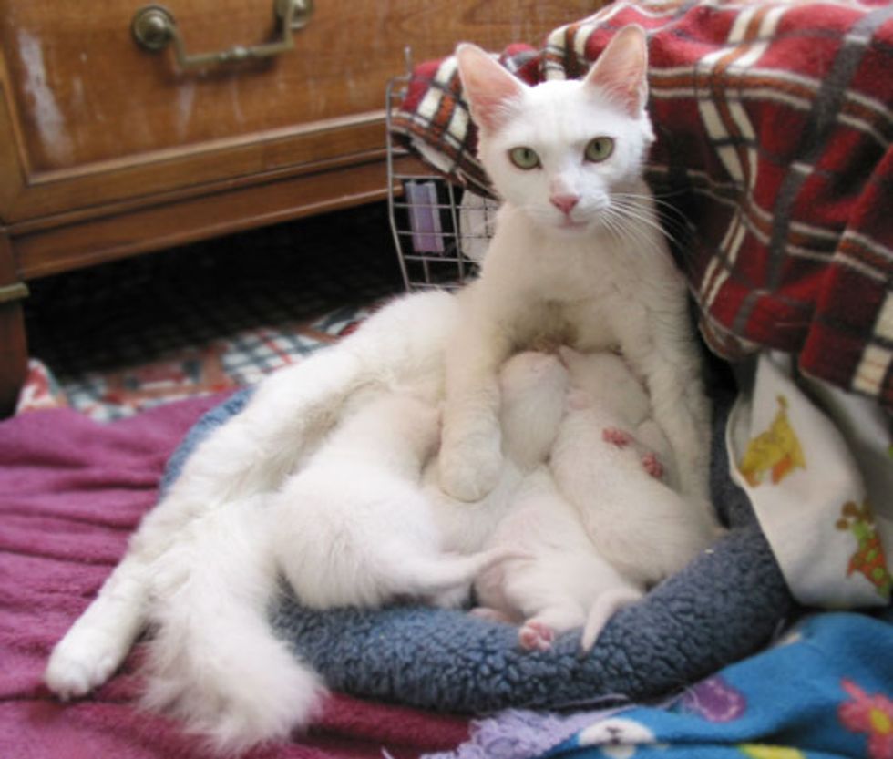 Betsy the cat mama came to her foster home along with her then 10 day old kittens. They all had upper respiratory infections. Williams Haas and his wife with years of fostering experience worked around the clock to bring them back to health.