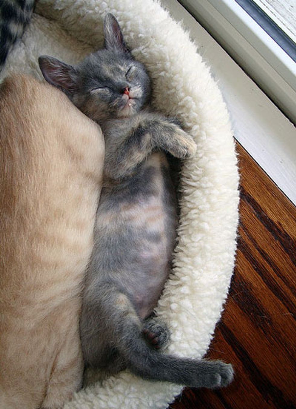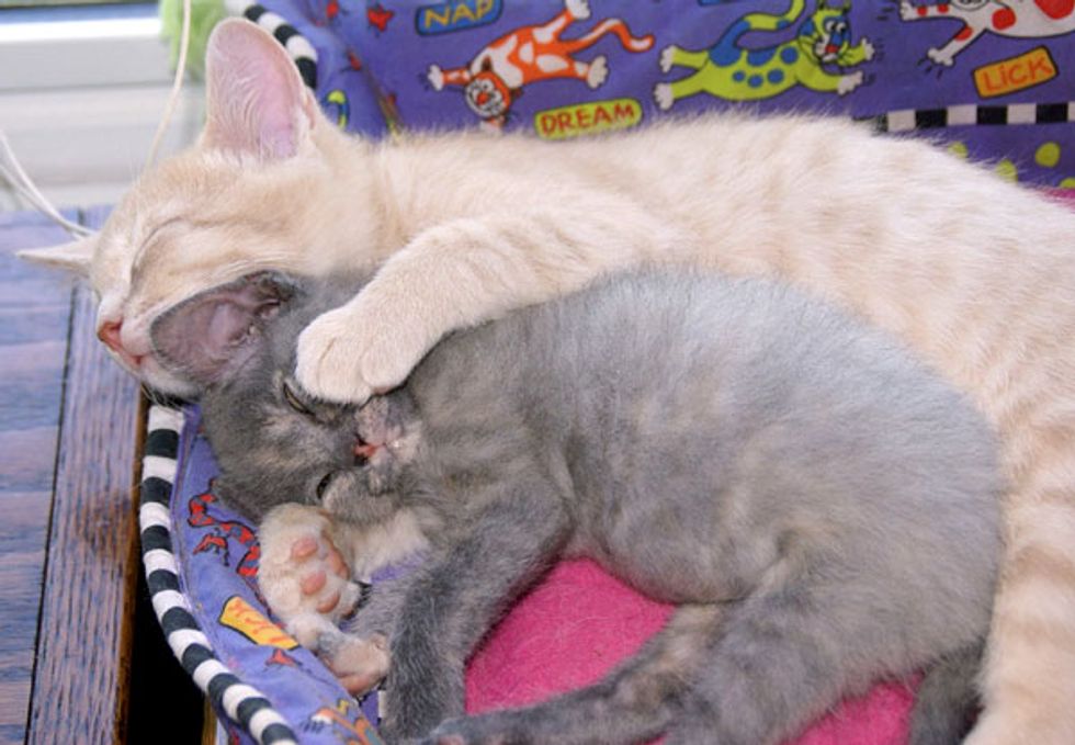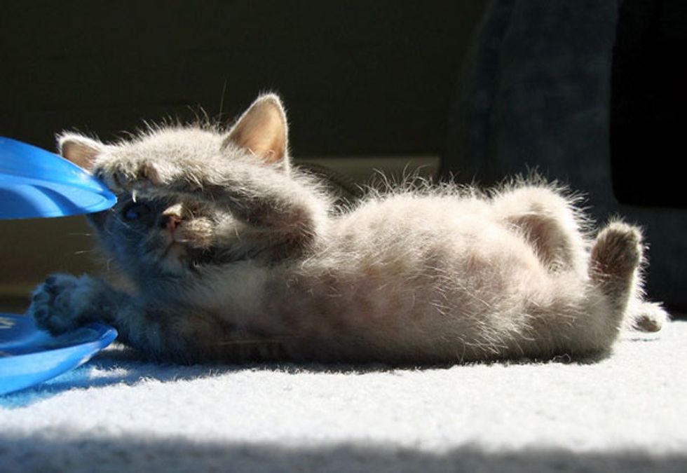 Beulah and her silbings came to Challenger’s House on March 21, 2009. "They'd been born to a stray mother (who evaded capture) and though they were almost 7 weeks old when they came to us, they were pretty small. The boys all weighed in at right around a pound. Tiny little Beulah was only 8.5 ounces, but a scrappy little fighter," says Robyn.
