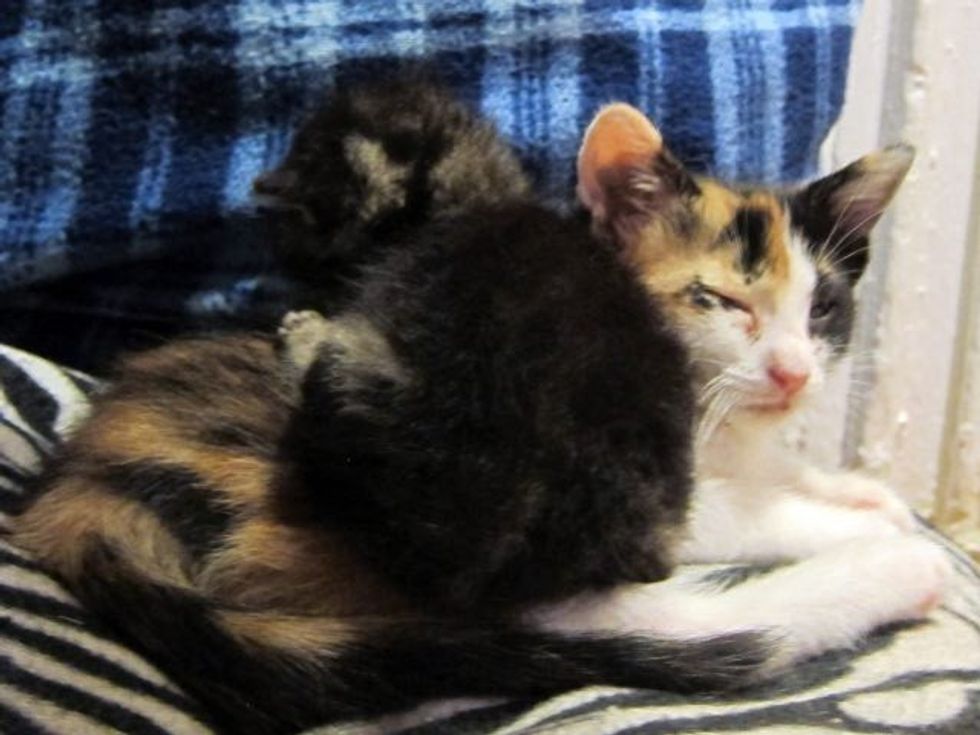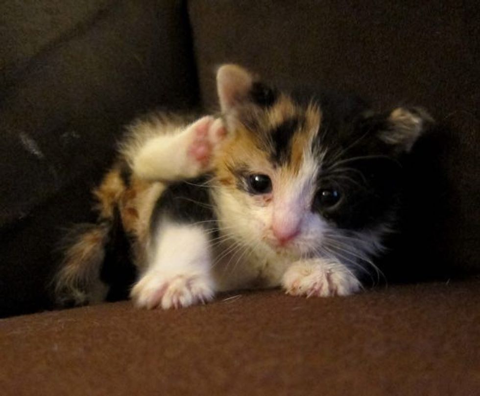 Pigeon the calico was found abandoned at a pigeon supply shop when she was still a wee kitten.