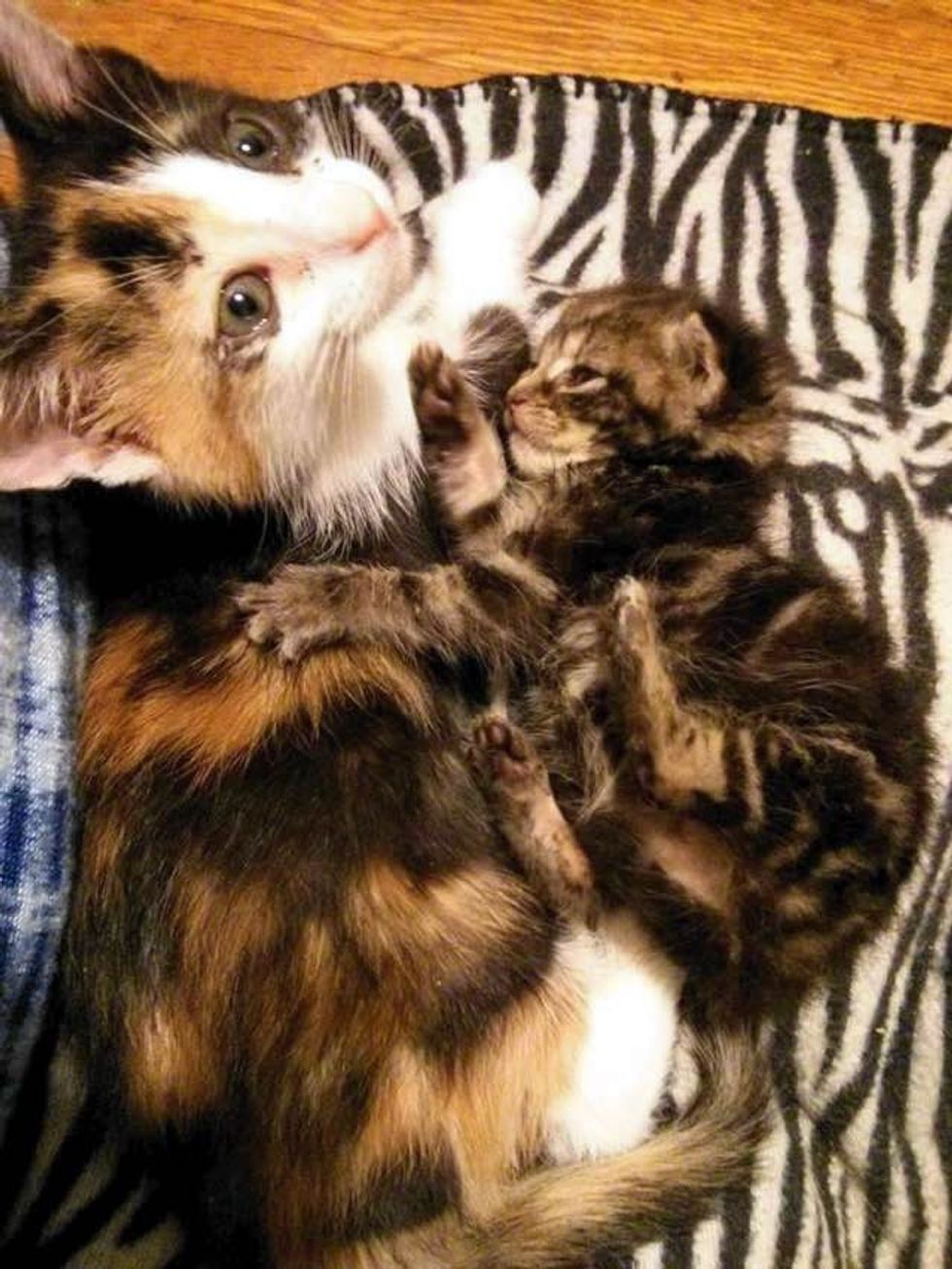 Merlin the tiny baby was so happy to have someone to cuddle with.