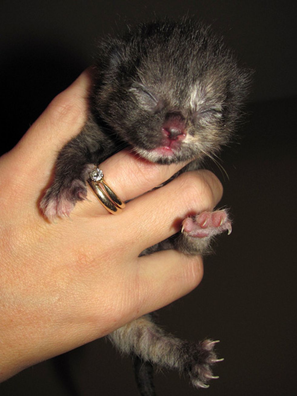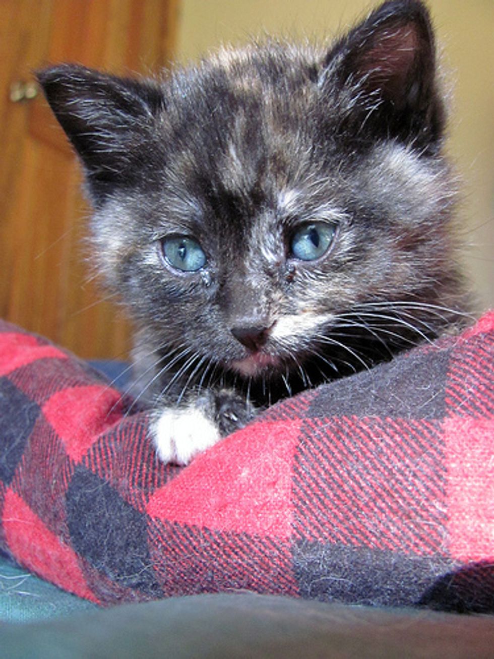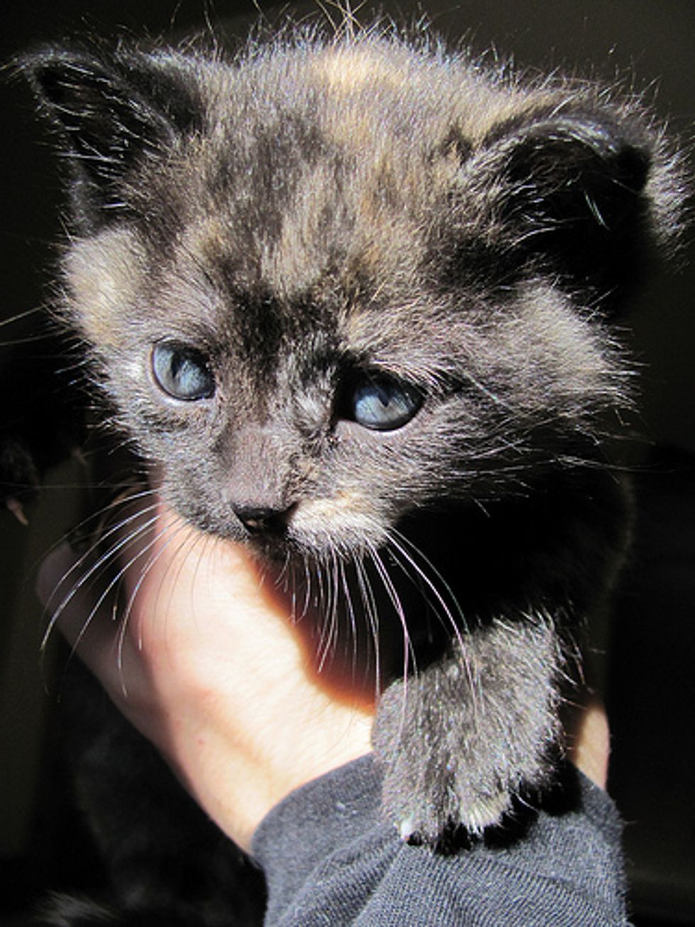 Little Bijou took a piece of my heart with her when she left our home. Here's how I remember it sitting here at the office: Moonshine (the stray cat mama) had three babies but then the labor stalled. About four hours later, this tiny wet, black bundle dropped onto the towel. At first it didn't move, and I assumed it had died in passage. The little thing responded to stimulation, though. I feared for this tiny furball, the runt of the litter.
