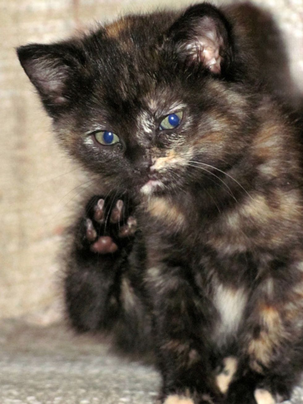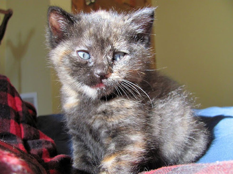 Little Bijou was born to a stray cat mother who was rescued by Jean last fall. She is the runt of the litter and a miracle kitten. This is her story: