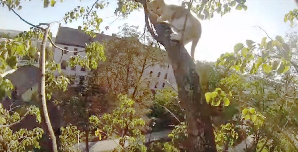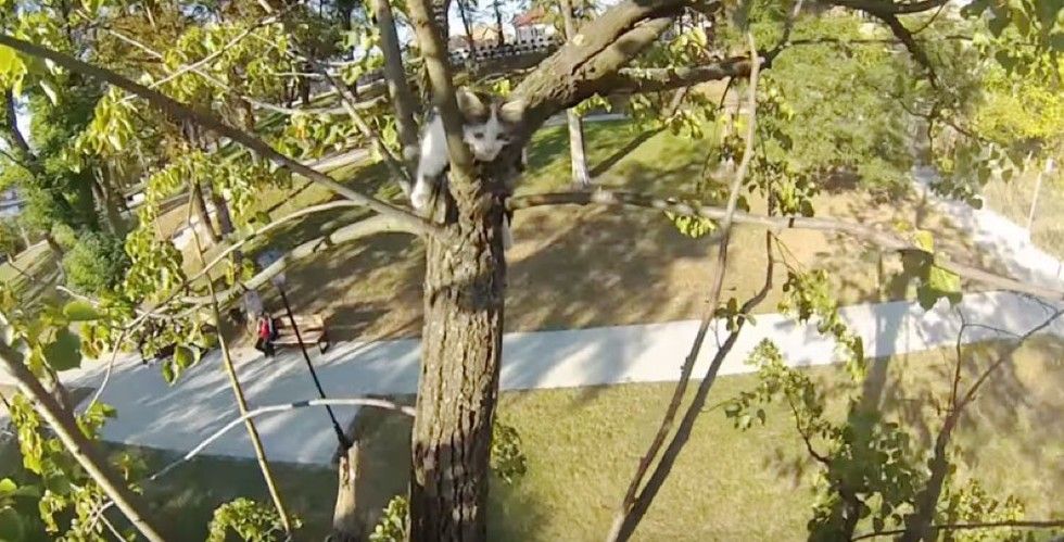 "I was going home after a ride with my bike. I heard two little kittens meow for their mom. The only problem was both of them were in a tree around 10 meters tall, and they couldn't get down anymore," Flavius Cristea said.