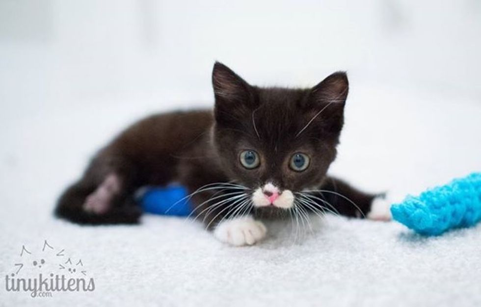 "The odds have been stacked against this little fighter since day one, but he fought his way to us and we are going to make sure he gets every chance to get back on his two adorable feet," Tiny Kittens said.