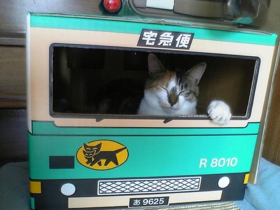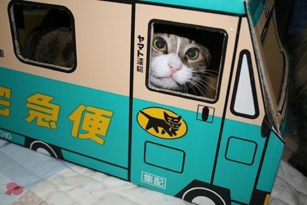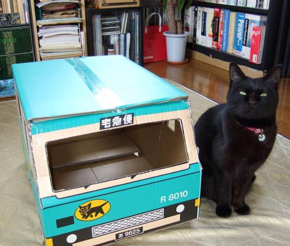 They even make mini delivery cars out of cardboard for their beloved feline friends.