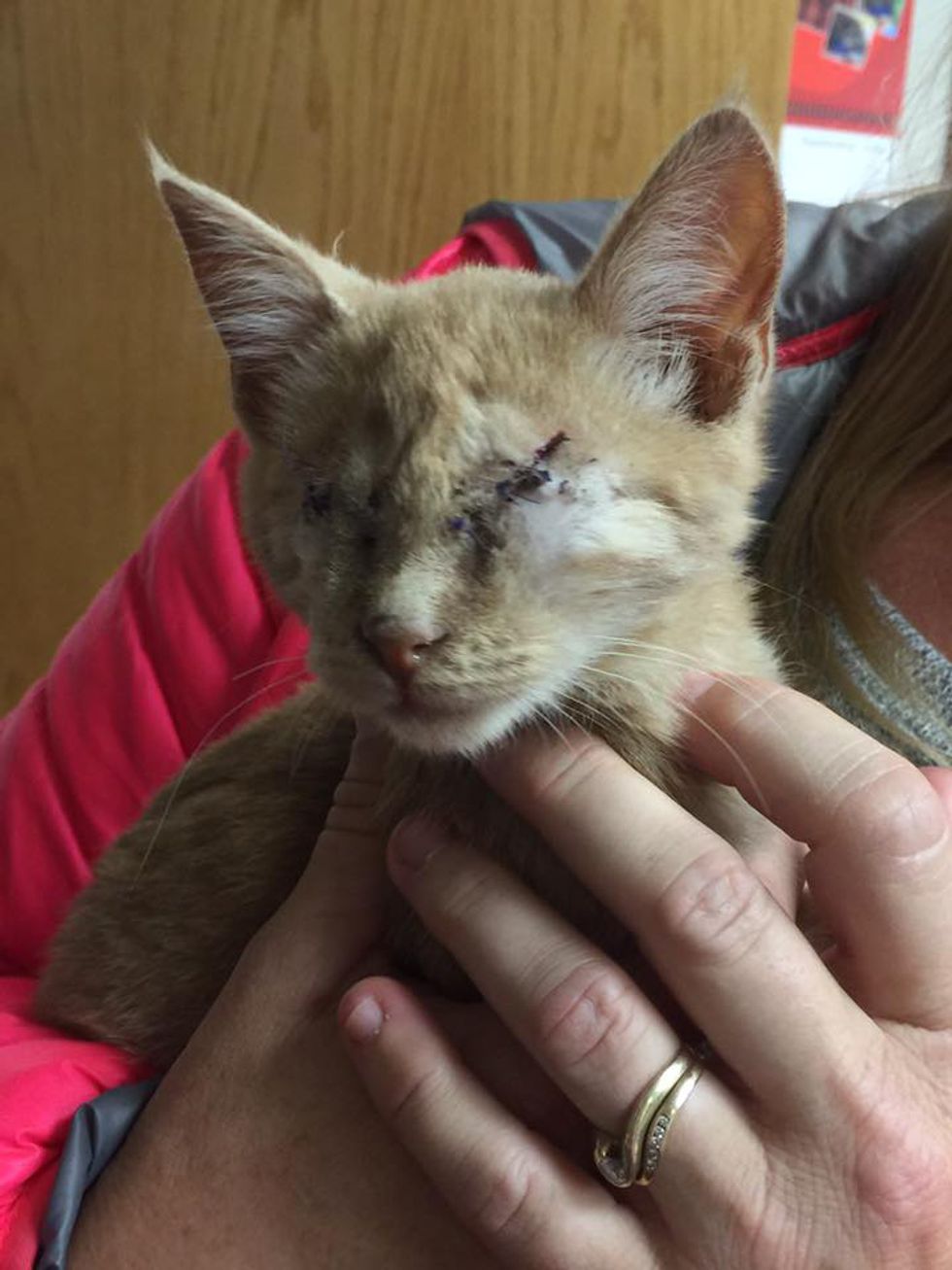 The vet had to remove his eyes to save his life. When Alison was contacted about the little stray who needed a home, she couldn't say no. "He was only 9-10 weeks old at this time and was very scared and unsure of himself."