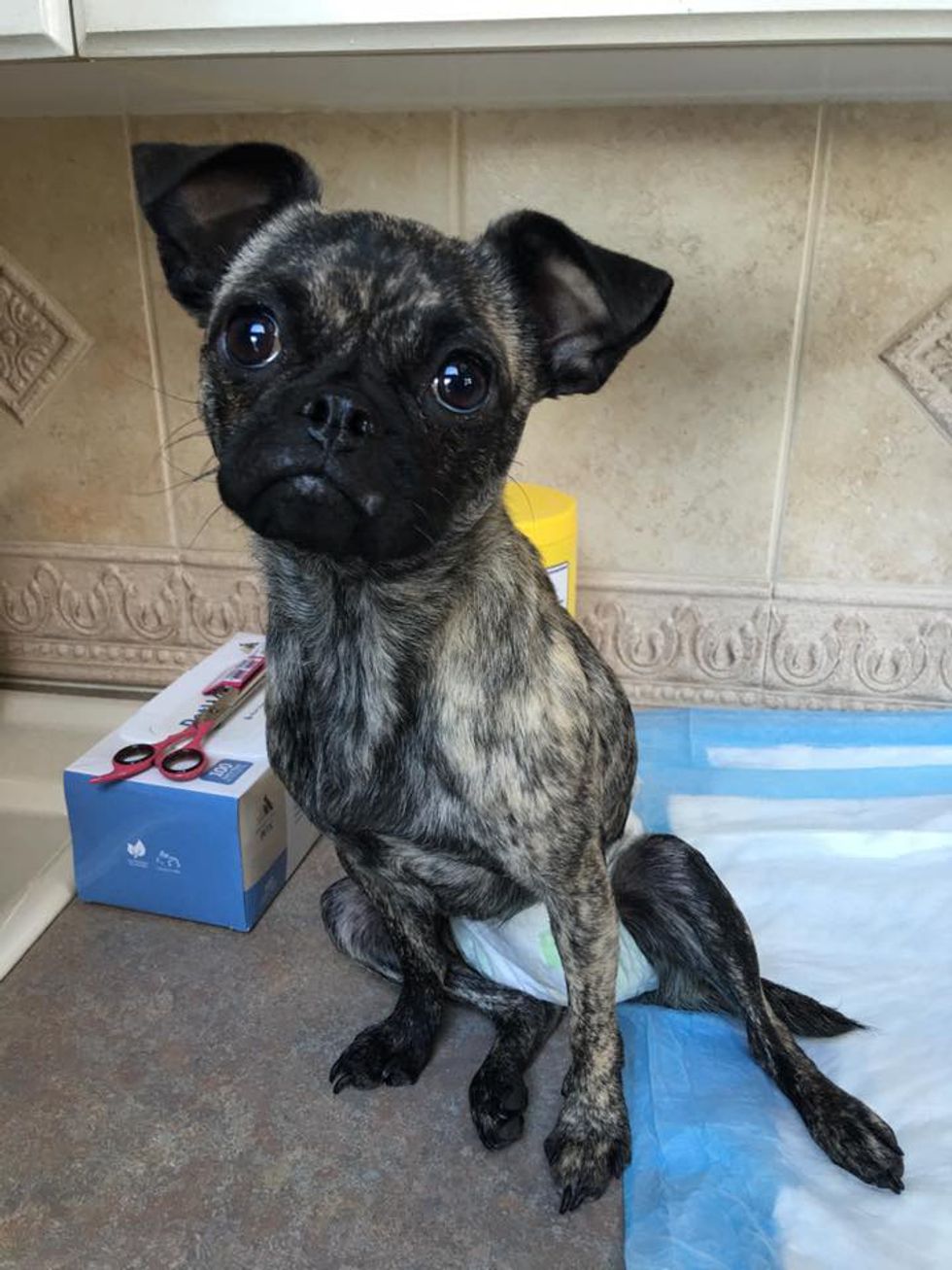 The little Chihuahua, Pug cross had suffered frostbite on her ears and pads of her feet. She has lost mobility in her hindquarters. When she came to Alison, she was starving for love.