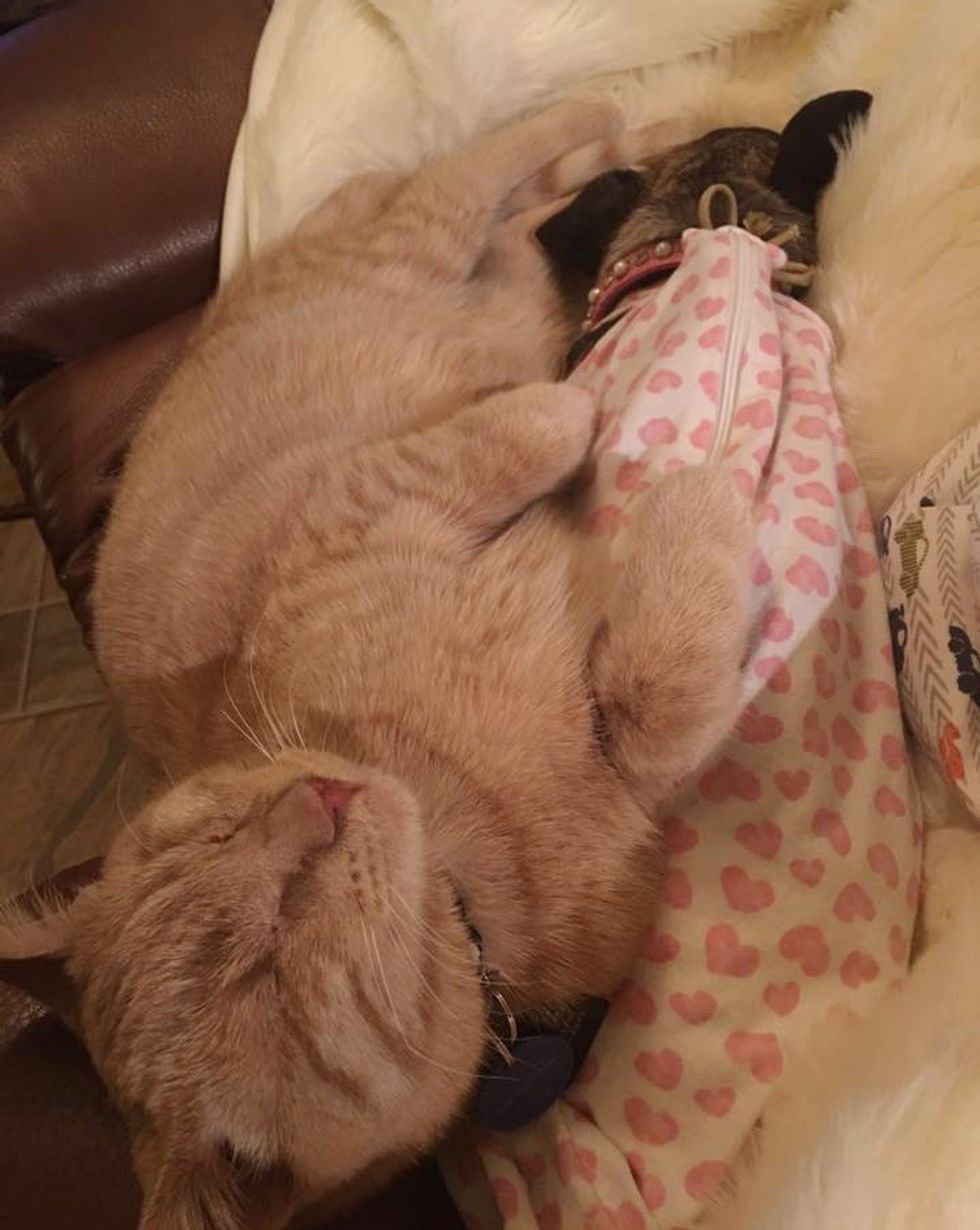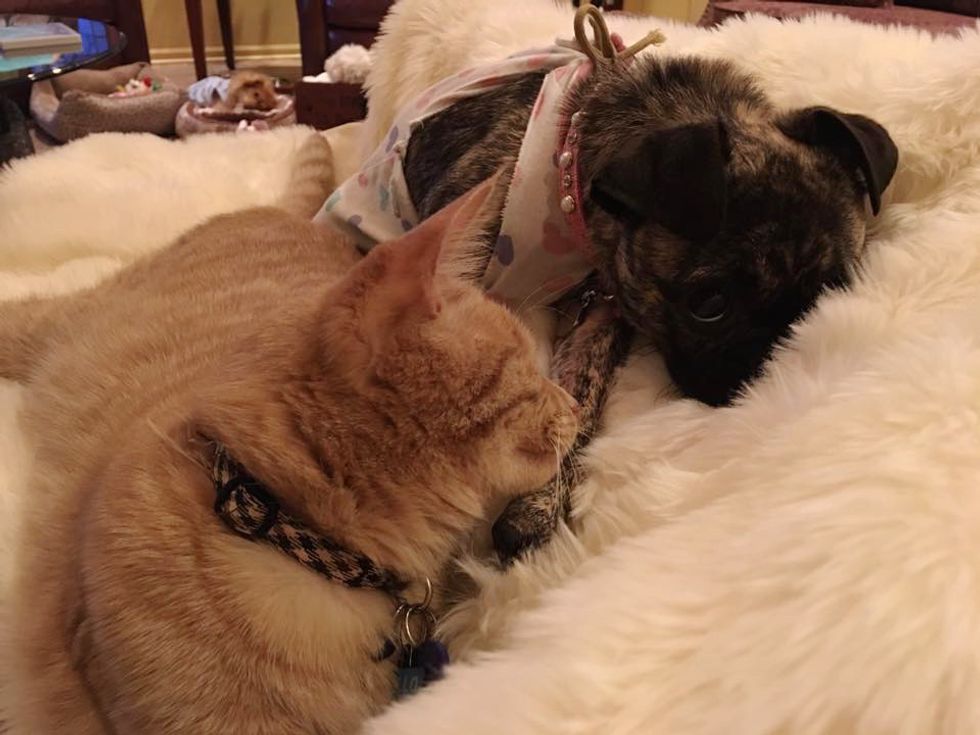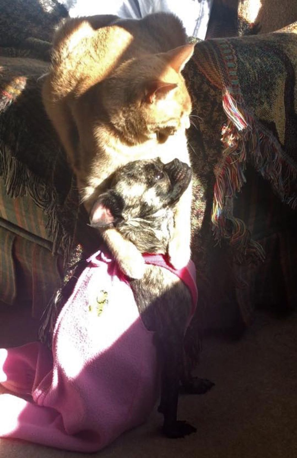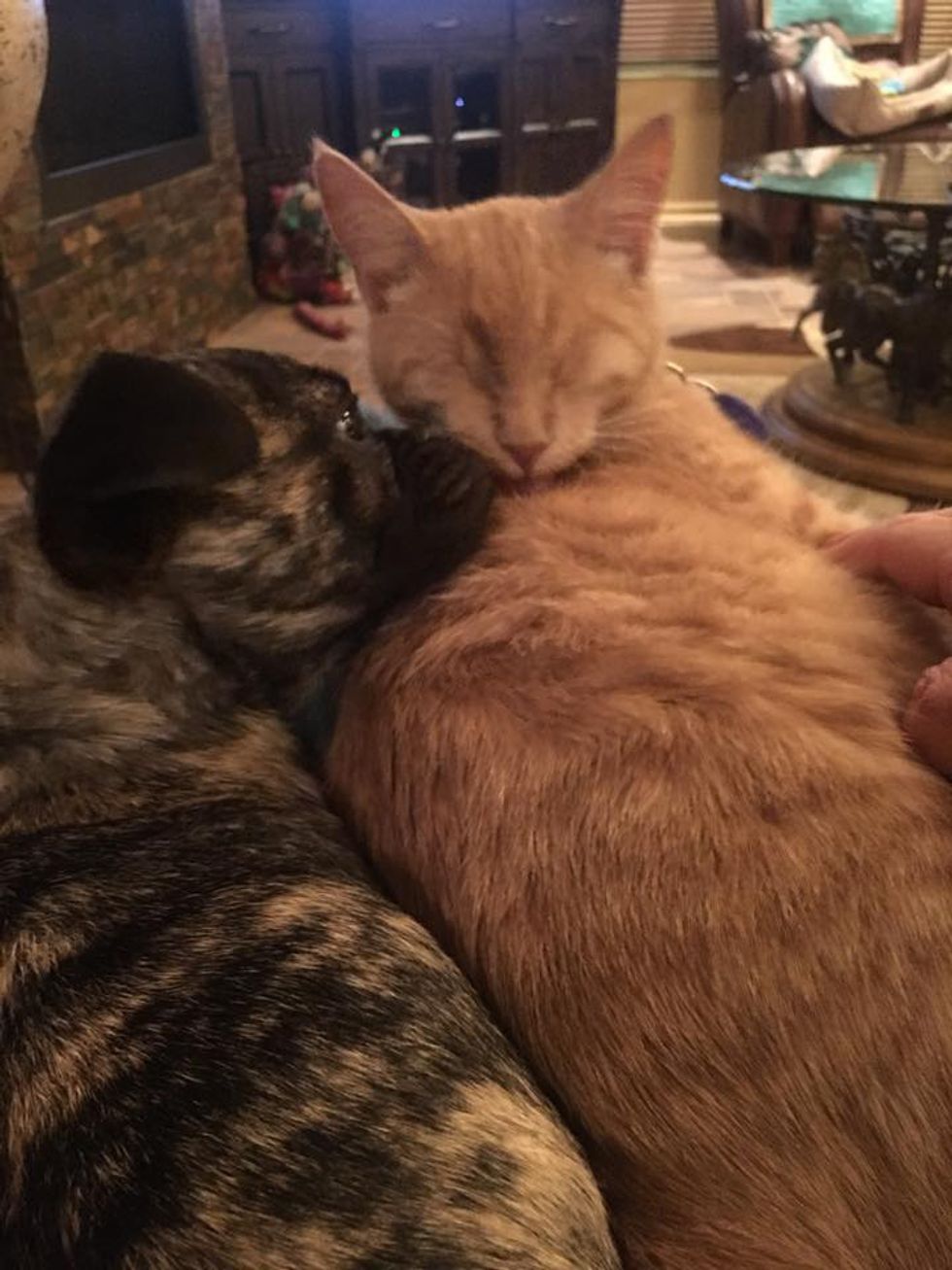 Mowgli seems to know whenever Scarlett needs a bit of TLC and will snuggle up to comfort her.