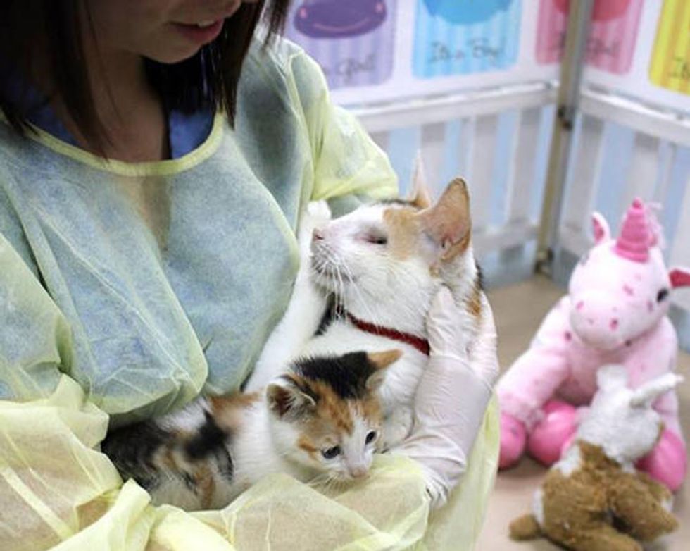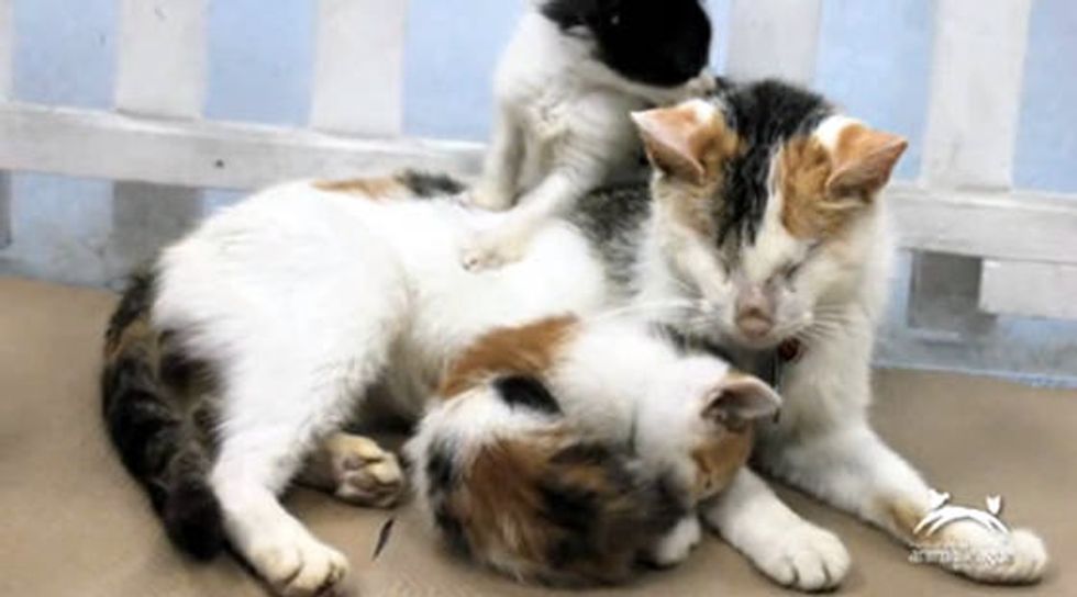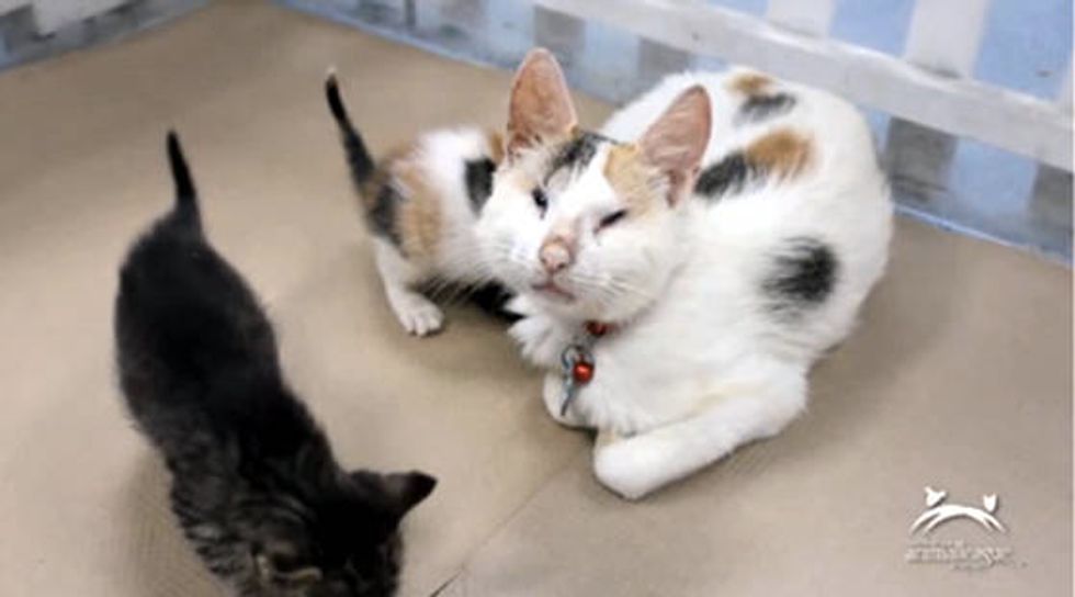 When they arrived at Animal League, the vet gave the cat momma a diagnosis for her condition. "…Kitna suffers from microphthalmia, a congenital disease characterized by a small or absent small eye. Both of Kitna's eyes are affected, which means she is blind," Animal League wrote on their website.