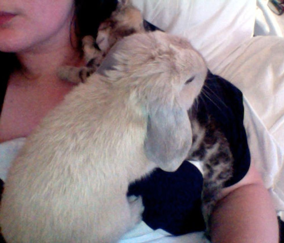 Willow (kitten) and Pikacu (rabbit), snuggles