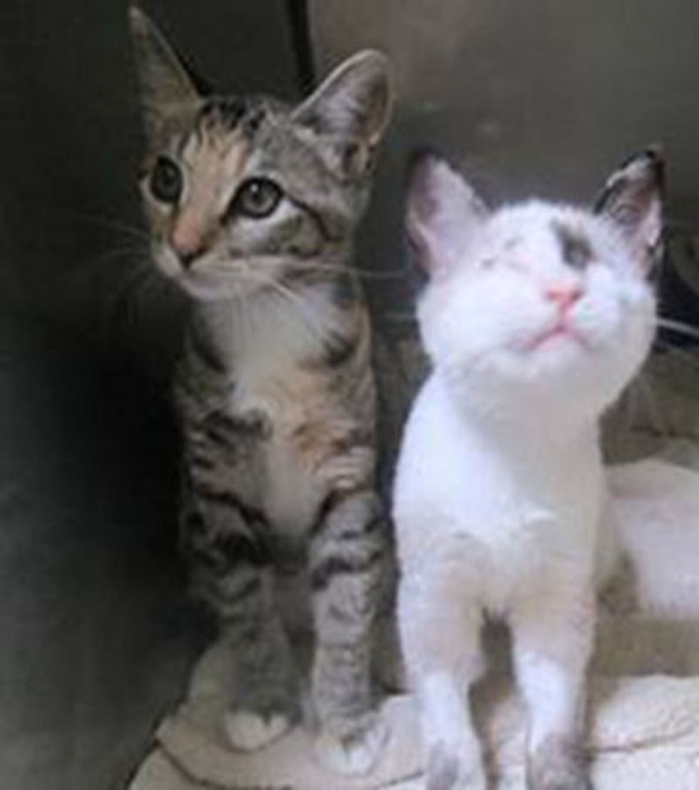 "With no complications during the operation, the little kitten was placed with another orphaned kitten so she could learn the 'in's and out's' of being a kitten," The Press Enterprise stated. Her companion soon became her best friend for life. They were named honor and Justice. "Justice depends on Honor for safety and security. She often mimics what Honor does even though she can't see her."