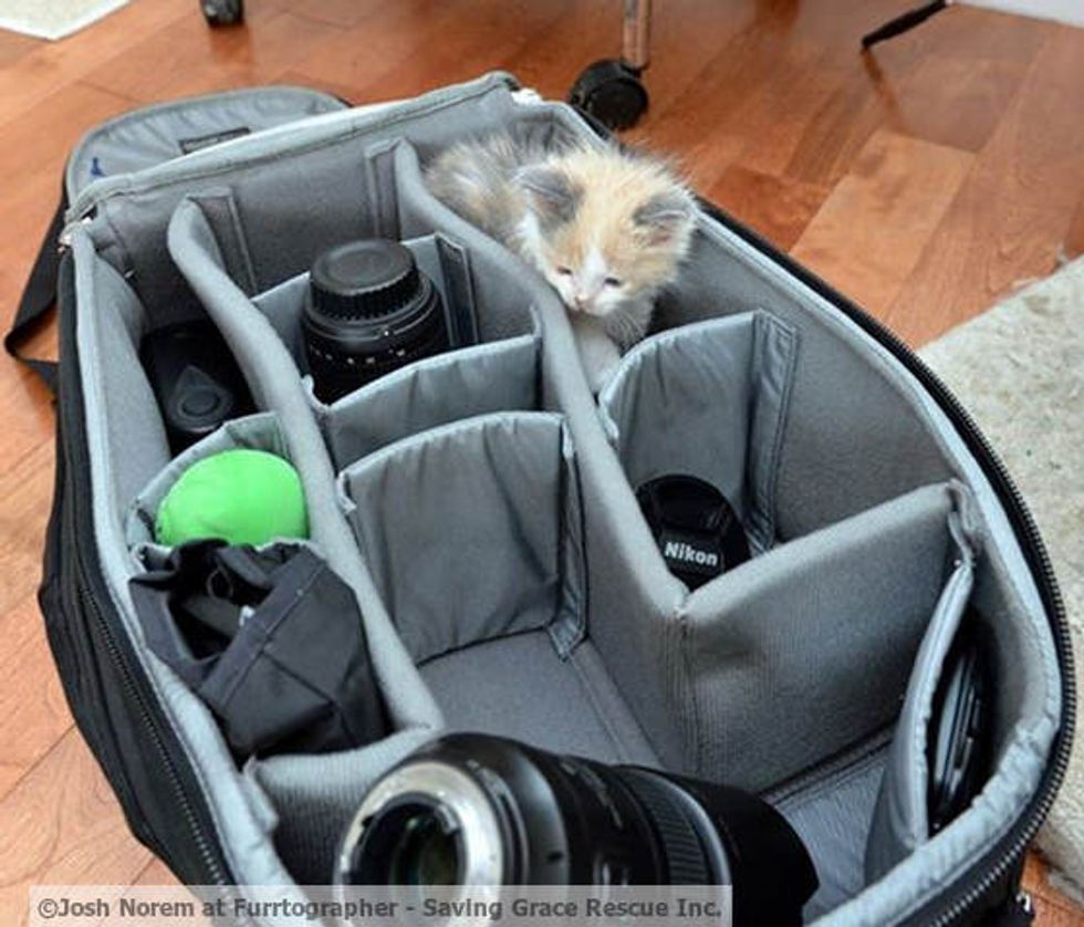 "Here she is in the camera bag - it's a good thing I keep one slot open for kitten lounging." - Josh Norem