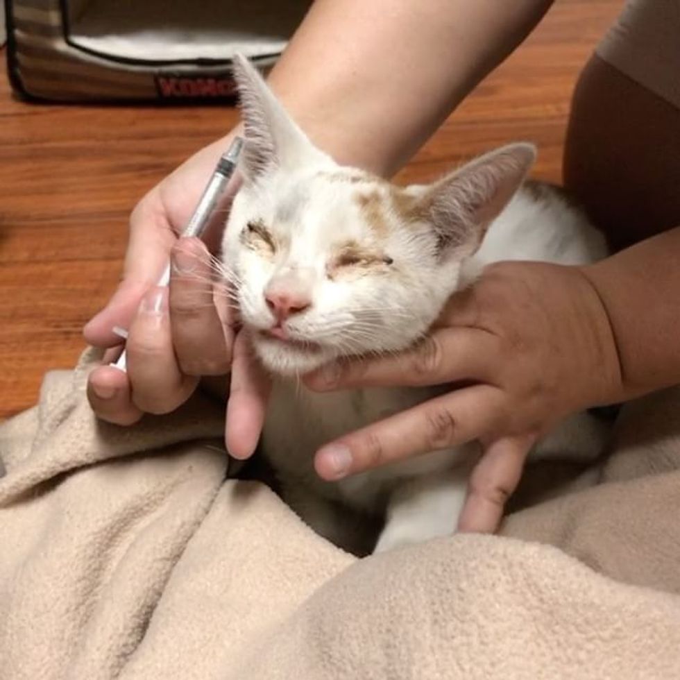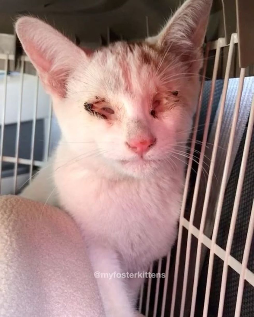 The little stray was filthy and needed a lot of help. "His eyelids were sealed shut from infection."
