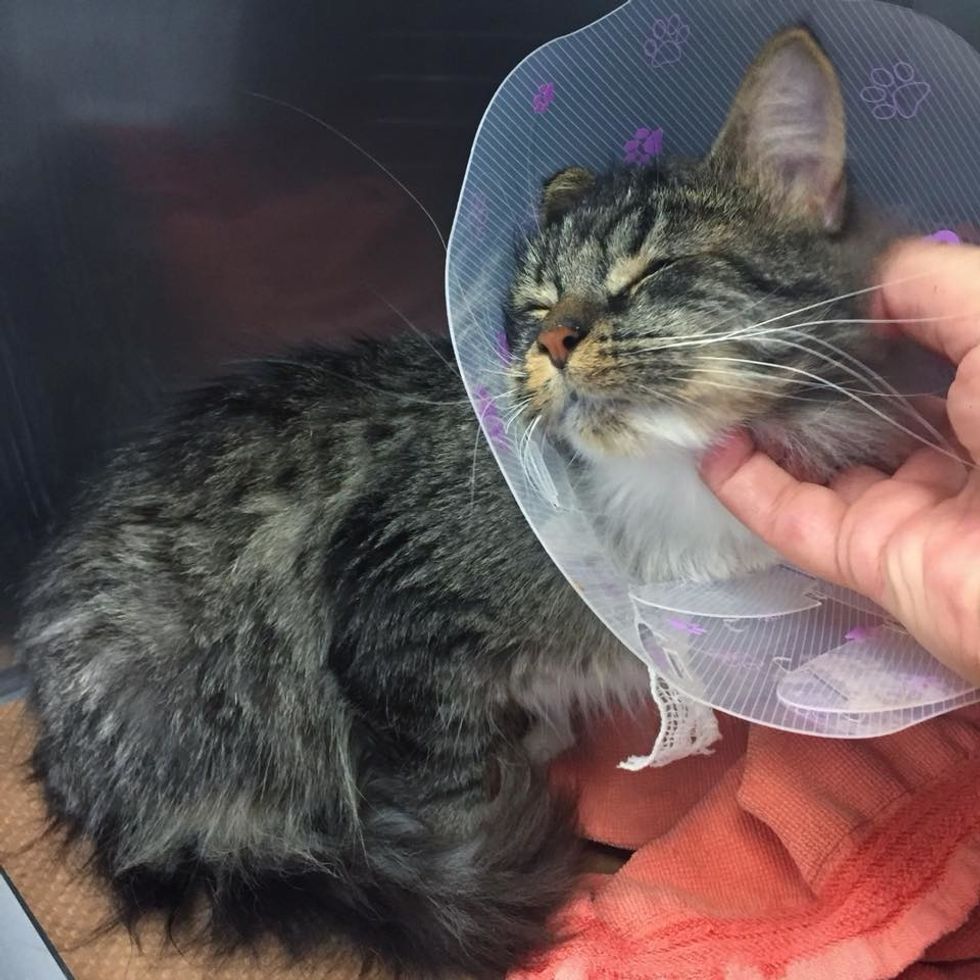 Taffy had neuter surgery yesterday. He purred up a storm while getting some neck scritches.