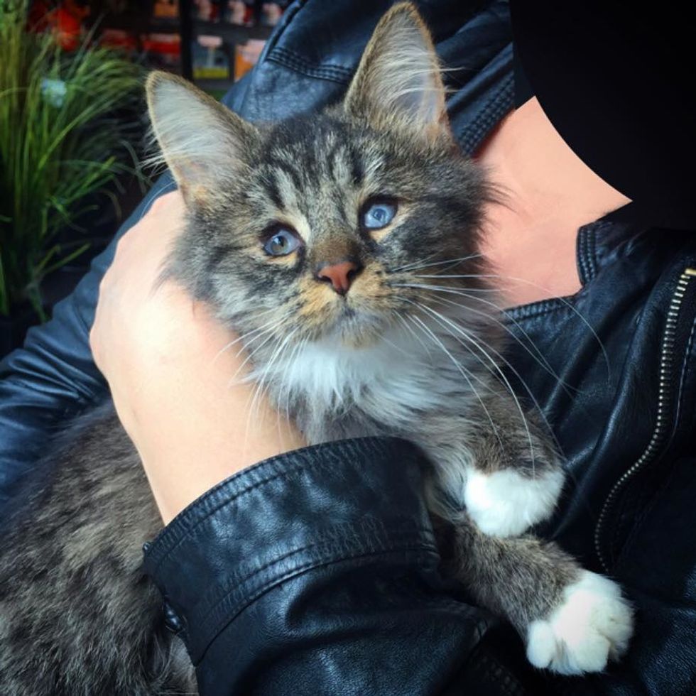 The sweet kitty experienced kindness and love when he was given a second chance at life. Now at five months old, he is the happiest little guy at the rescue, giving everyone hugs.