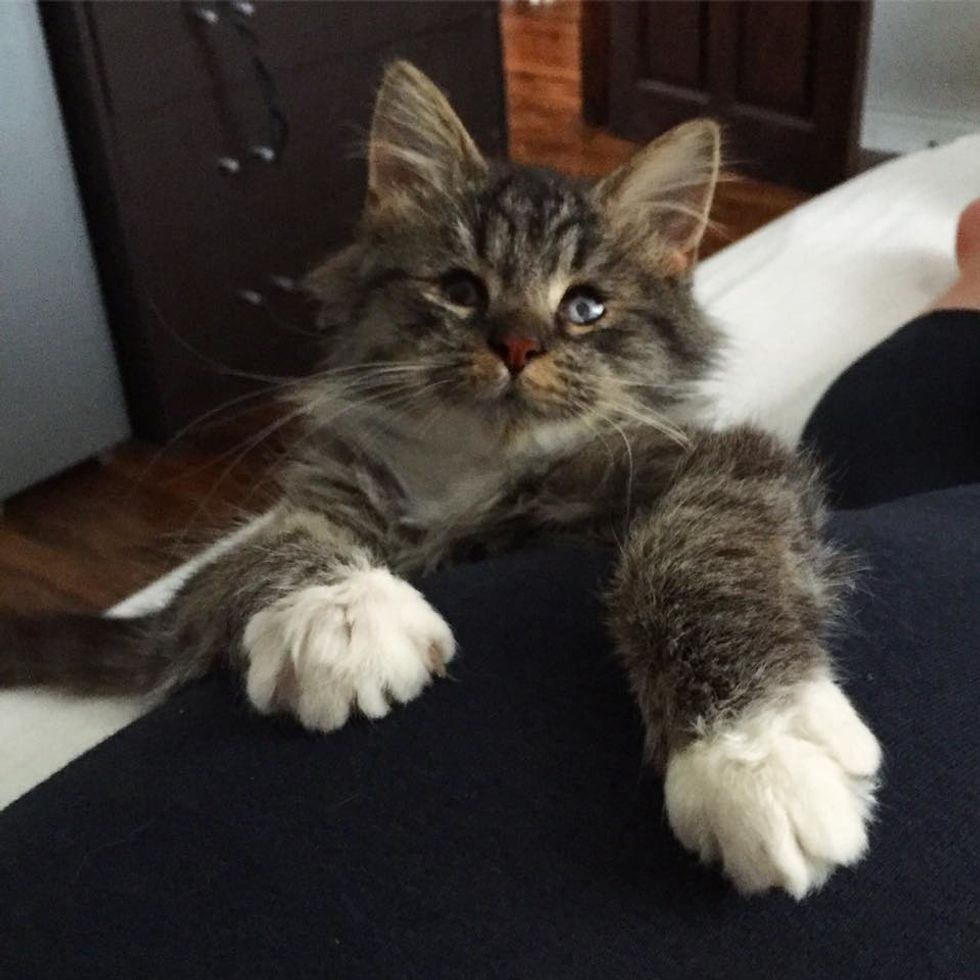 The infection was so severe that his eyes couldn't develop properly. After treatment, the kitty was back on his paws but had lost most of his vision.