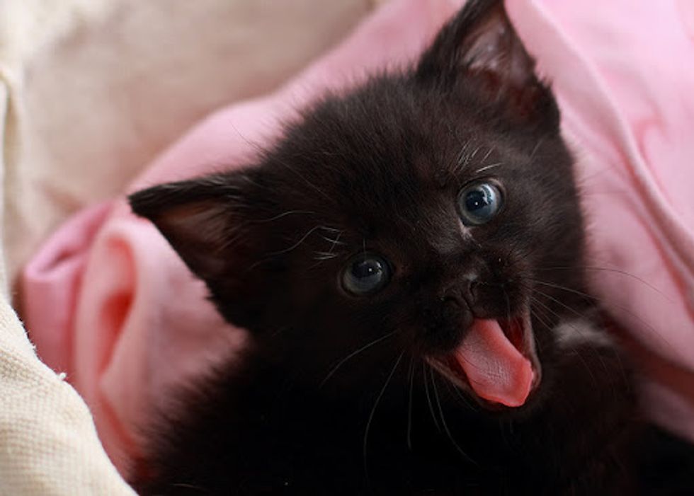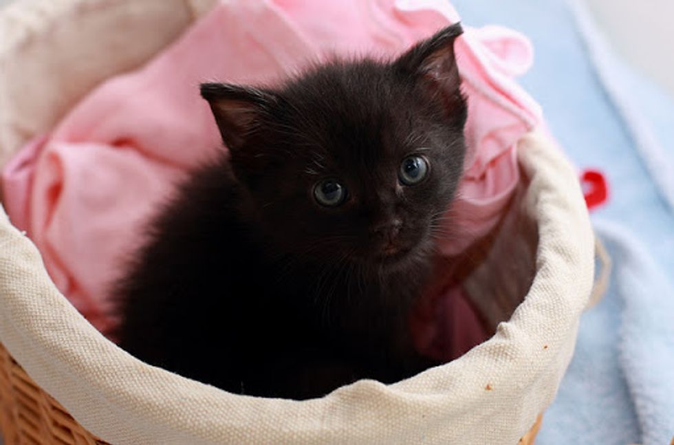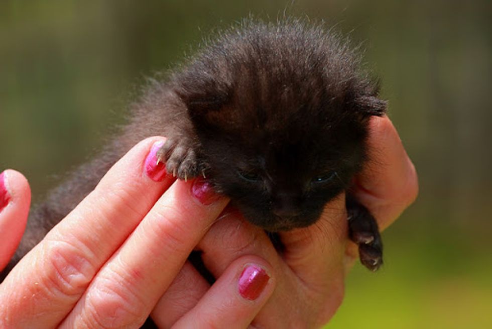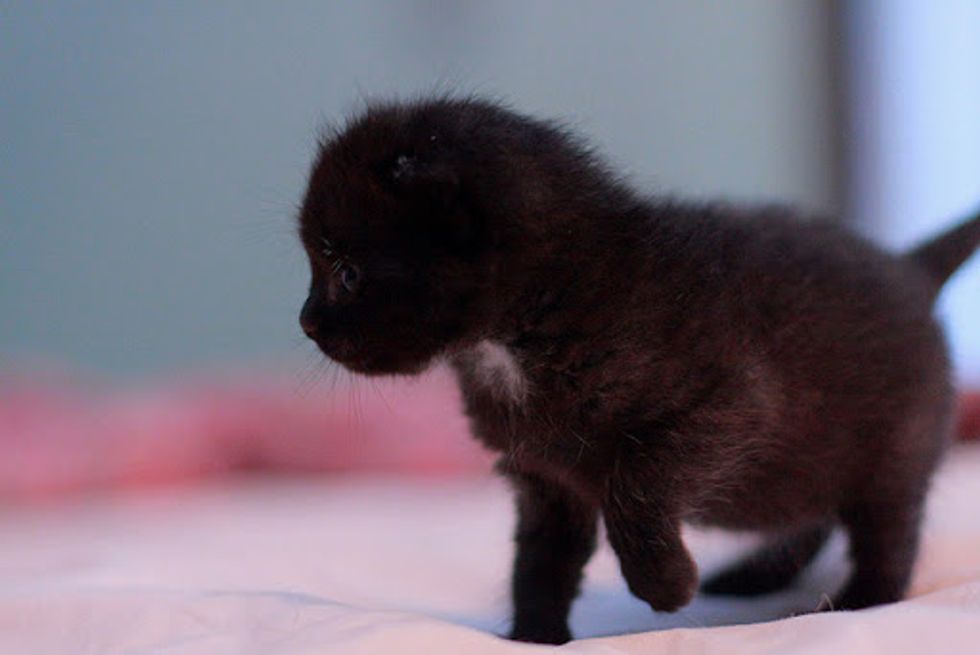 Little black kitten Bo was found and rescued by Bryan's parents under their deck when he was only about 6 days old. They brought him into their home. Bryan's mom raised the little puffball and watched him grow bigger and bigger each day.