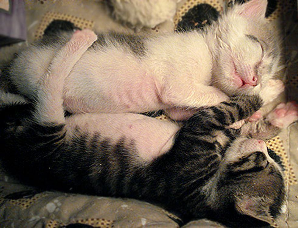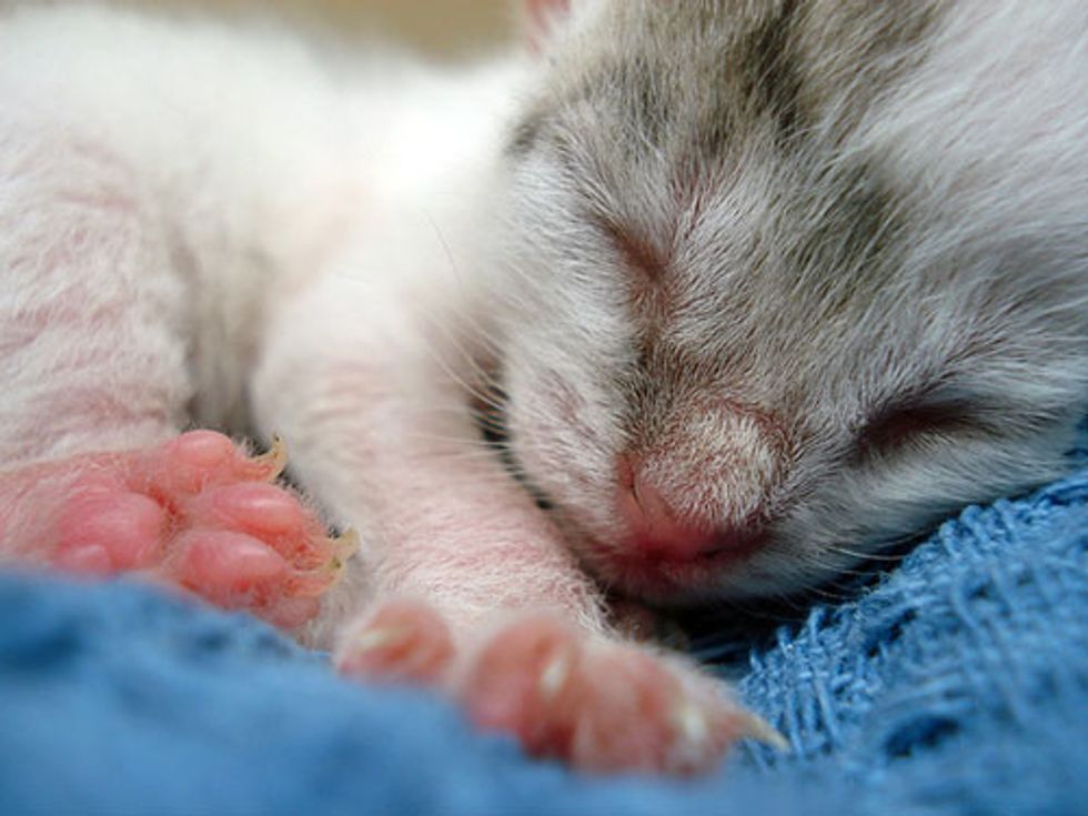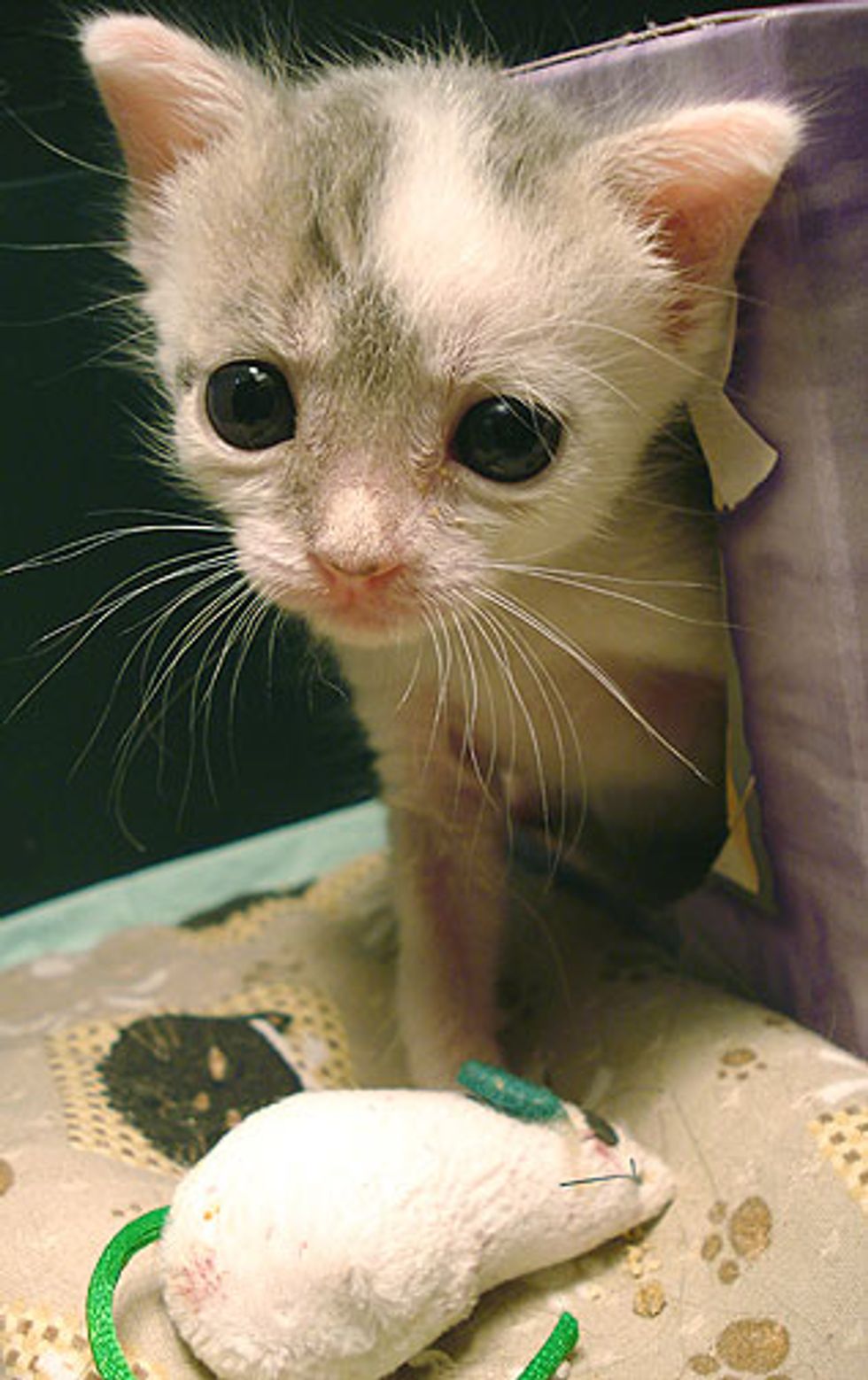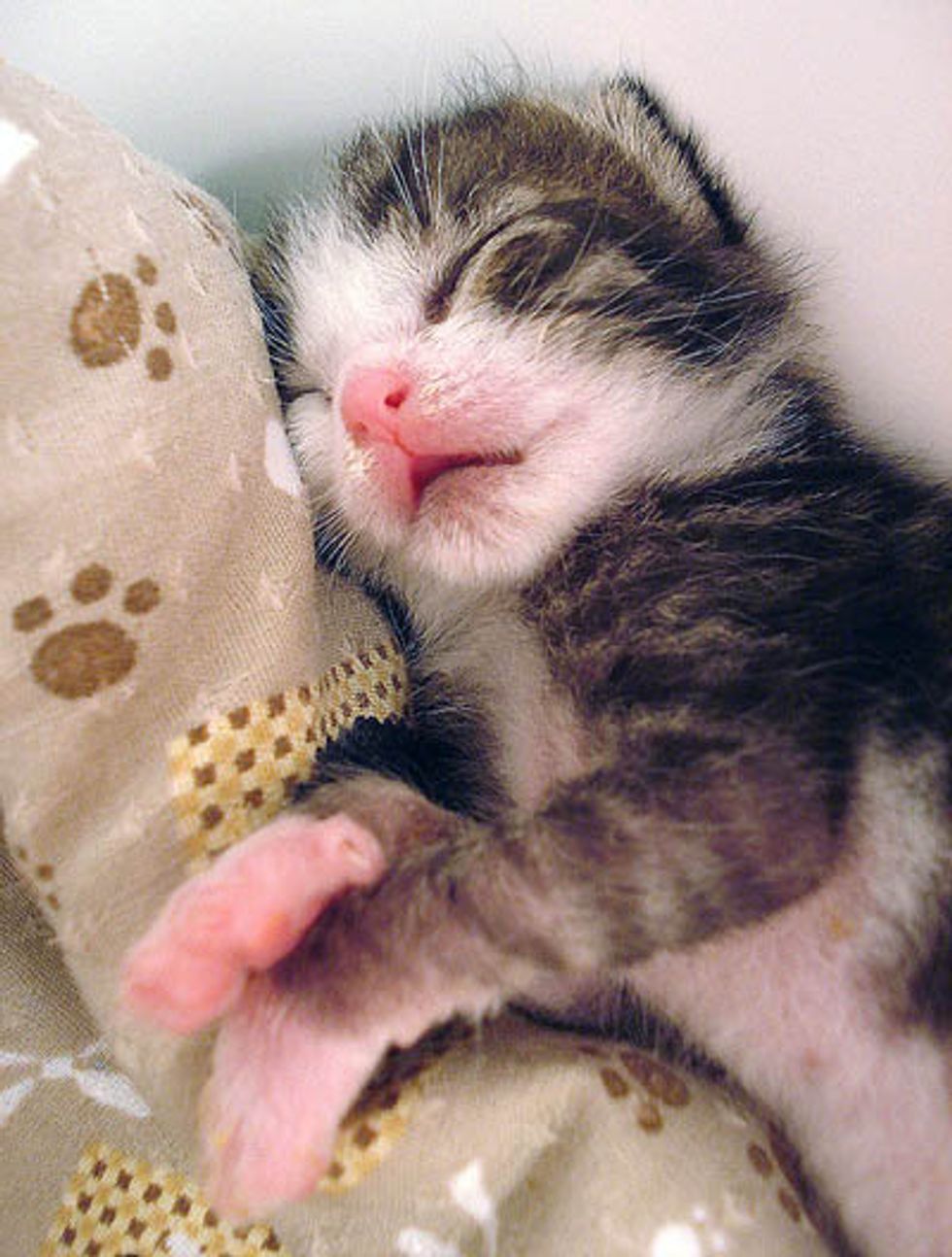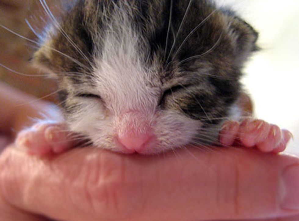 Three orphaned kittens were found on a pathway at the Brooklyn Botanical Garden on July 16 and 17, 2007. "Their eyes weren't open yet, and with no mother in sight, they were brought to me to raise by hand," says Lisa Vallez, animal rescuer from New York.