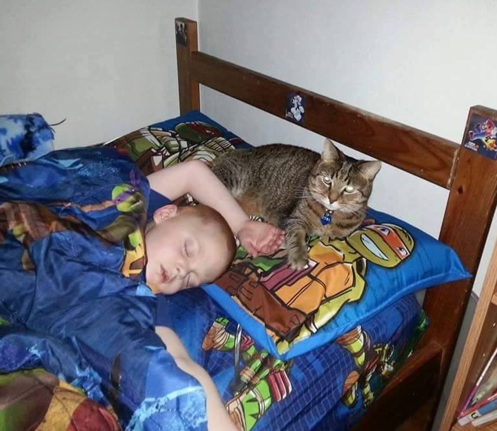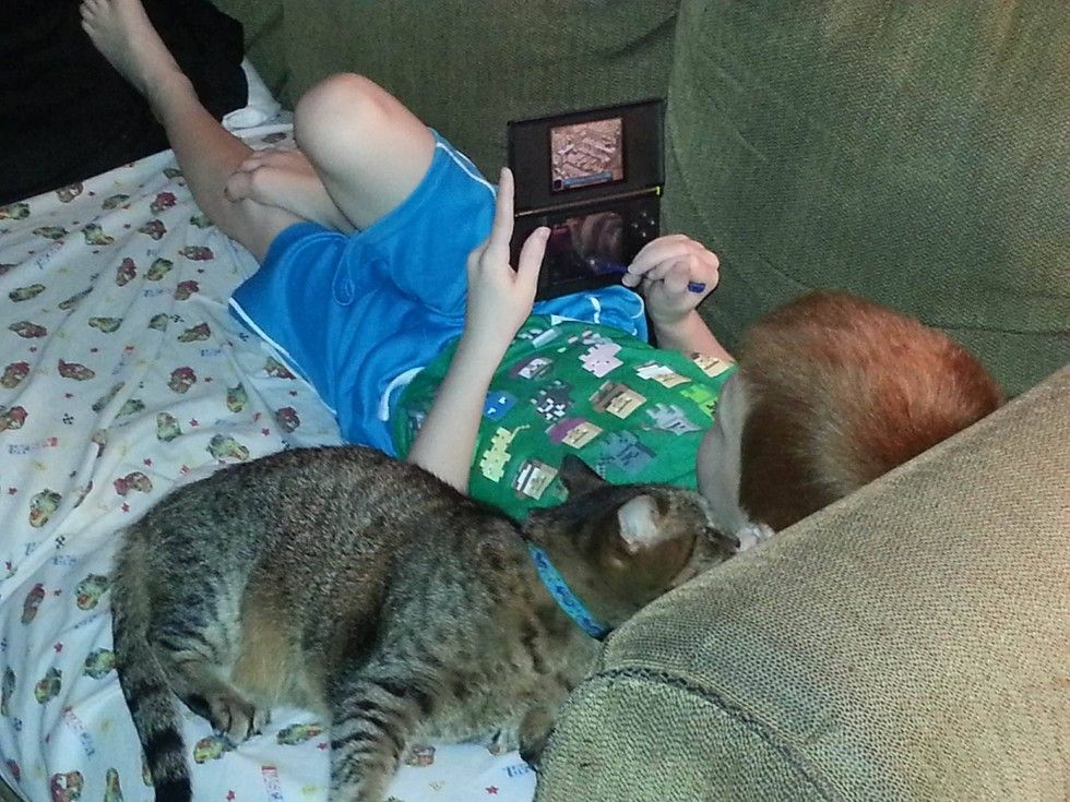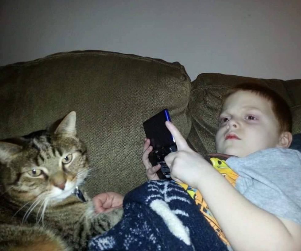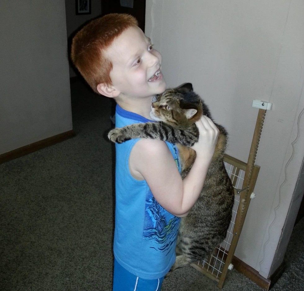 "With his autism Austen can be very particular with his things and Autumn is his. He absolutely loves cats and she is special to him."