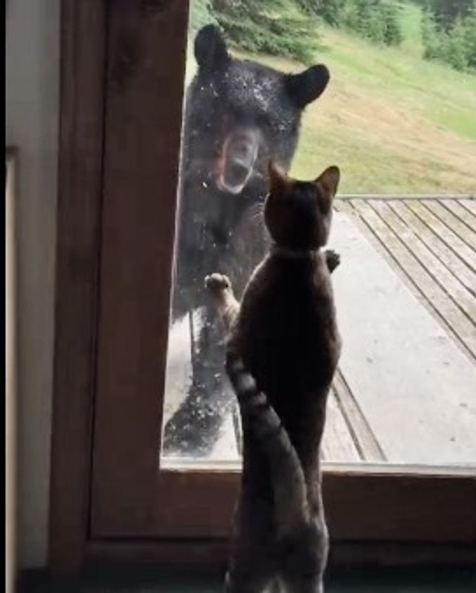 This incredible cat shocked her humans when she lunged at a bear in an attempt to protect her home.