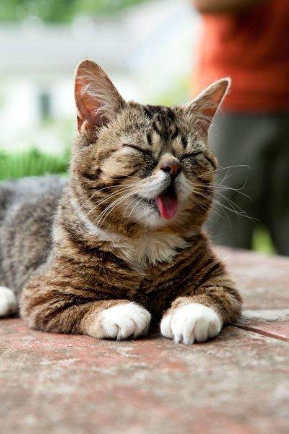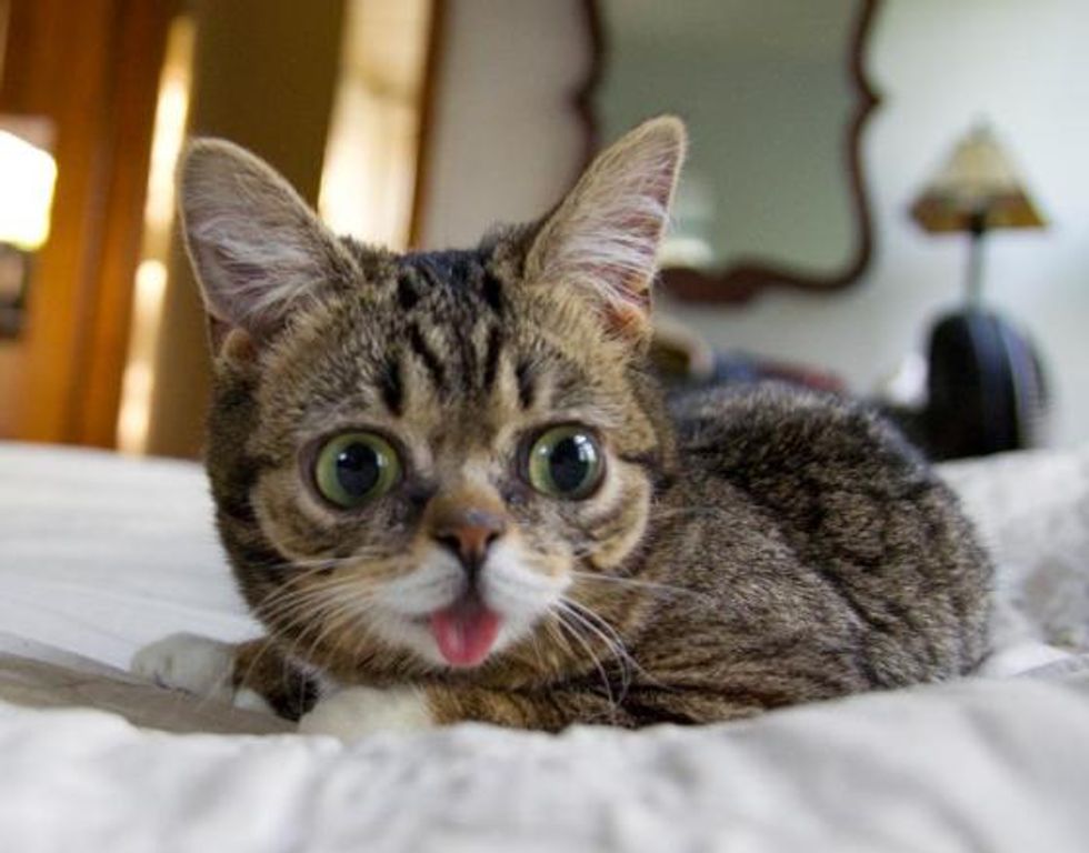 BUB is a very special kitty with a unique face - a pair of big green eyes and a tongue always sticks out. According to the Lil Bub page, she was the runt of a litter from a stray outdoor cat, and came with numerous mutations. Her foster family had a hard time finding her a good home, but one guy from Indiana took her in and now feeds her only the best food and treats her like a queen.