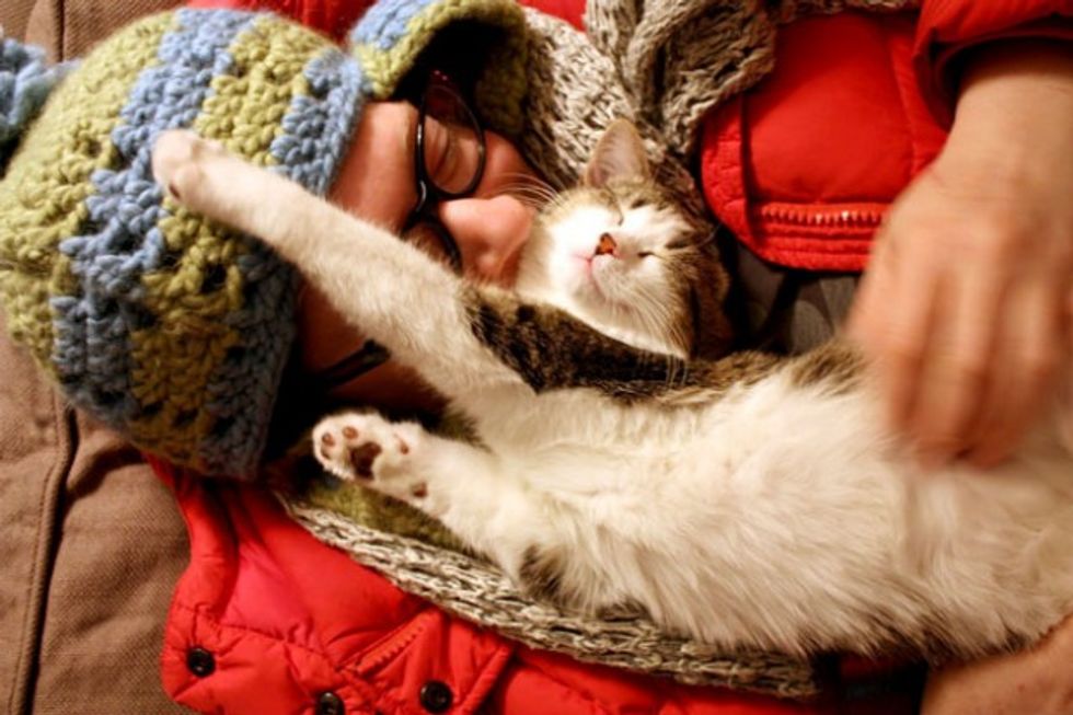 "This little miss also allowed me to give her a long pet and to hold her in my arms. After we came back from dinner, Debra was back at it, and had that little kitten belly up in her arms with her eyes closed and getting a belly rub. I got to do the same thing the next morning."
