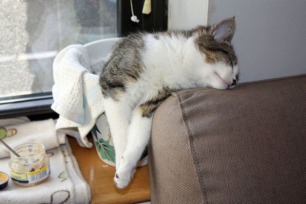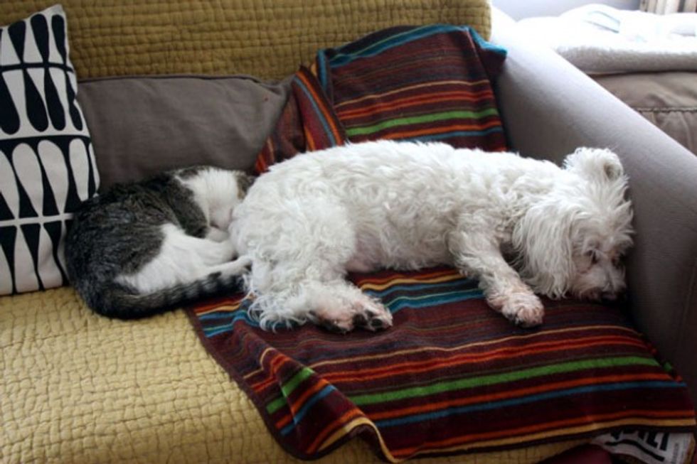 The little girl is called Bunny. Slowly Bunny came out of her shell, spending more time with Debra and Jannese on the sofa, snacking on some baby food, napping on their lap and even giving the occasional purr. "If it wasn't for baby food we'd still have a snarling spitting kitty." She was still a bit timid and uneased when she was on the floor, but it was not long until she finally adjusted to her new life. Jannese's dog Budda had been nothing but a great friend to her.