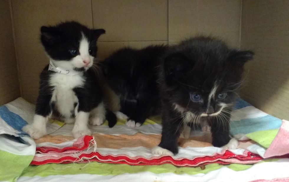 The kitties are all tuxedos, around three weeks old. Staff at the RSPCA are feeding and caring for them around-the-clock. They are very playful, full of energy, loving all the attention and constantly seeking cuddles.