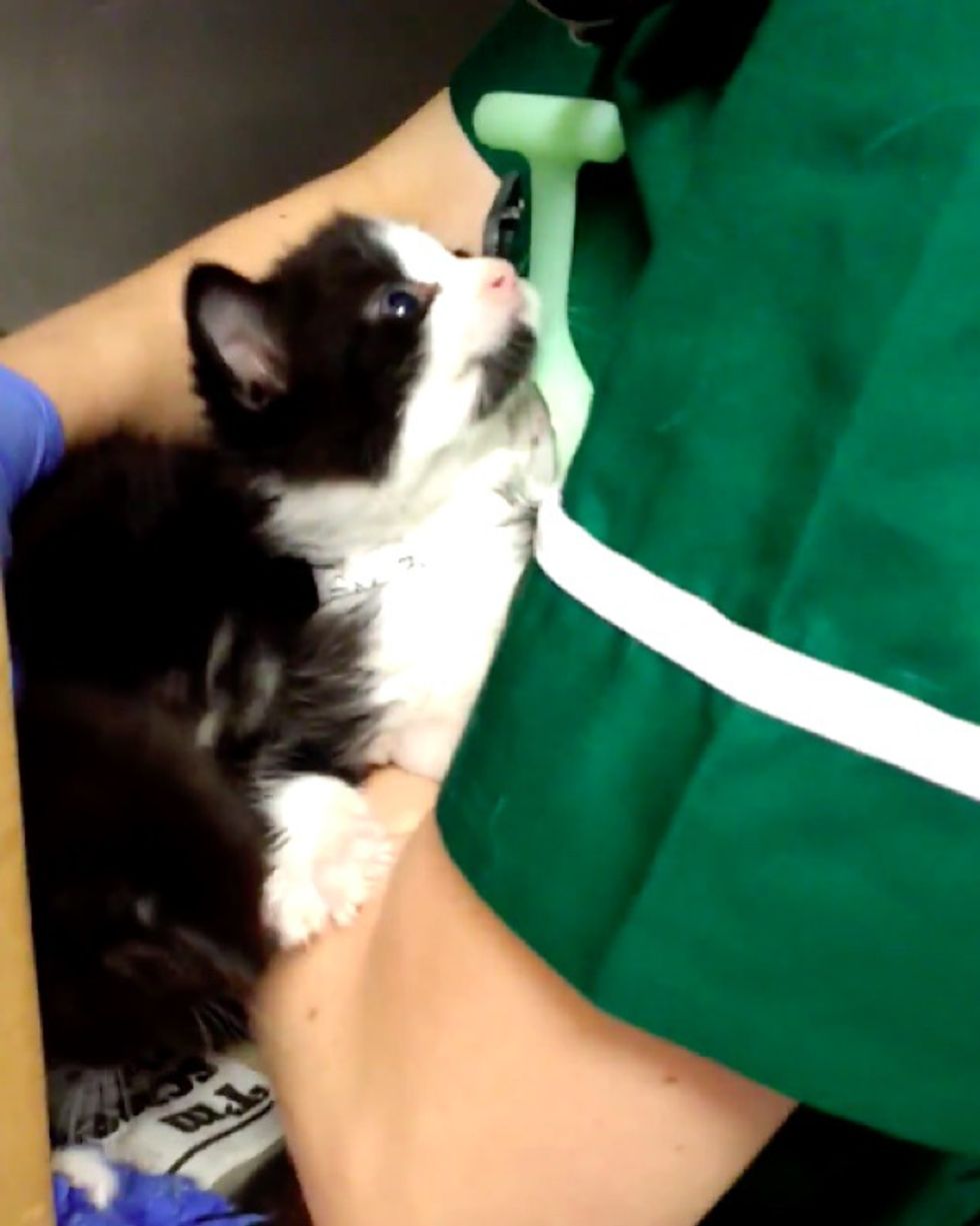 "These little bundles of fluff are far too young to be away from their mother… Luckily, they are now being very well looked after by our vets and nurses at Harmsworth Animal Hospital (in Finsbury Park)."