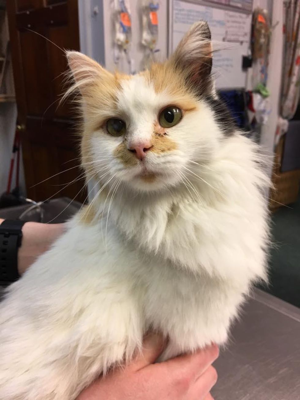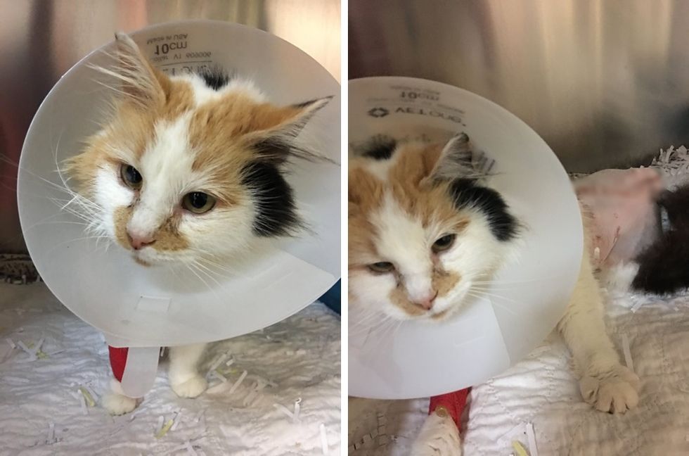 After getting examined by the vet at Kanawha Valley Animal Emergency Services, they determined that her leg injury was so severe that it could not be saved, but the kitty would recover and thrive.