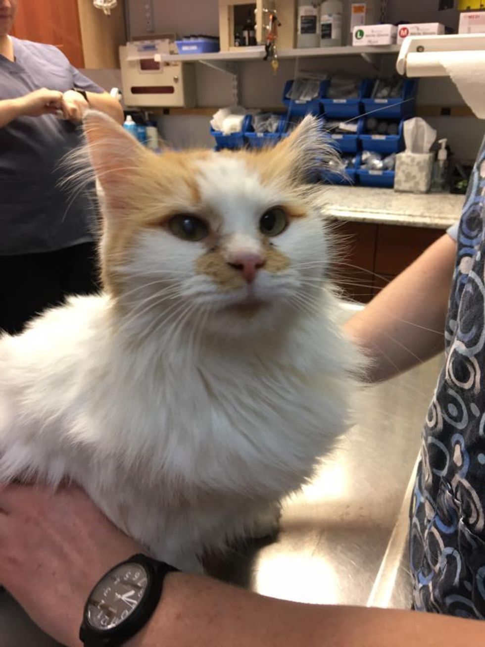 The two-year old kitty came with a mangled leg. They reached out to Itty Bitty Kitty Committee (IBKC in Charleston, West Virginia), hoping they could help.