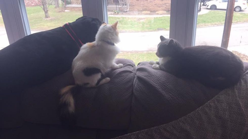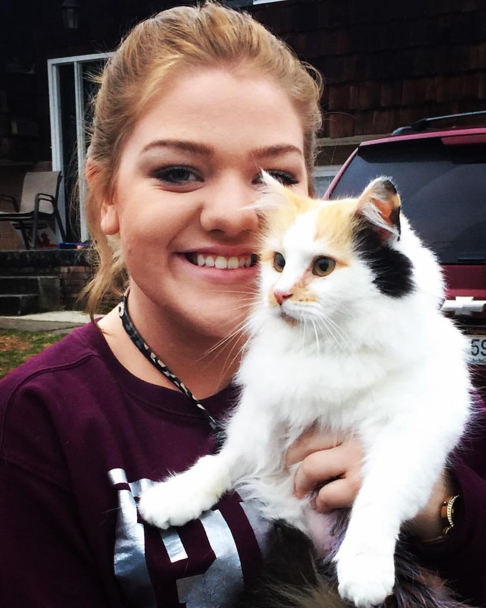 "This cat is the sweetest! All of the animals have adjusted and get along now," the Hunt family said.