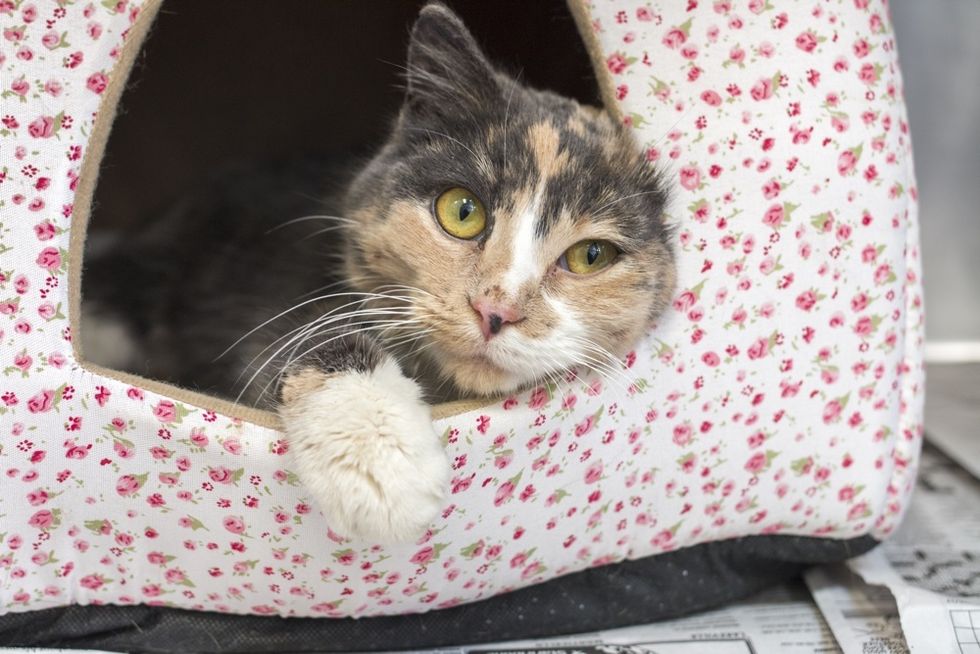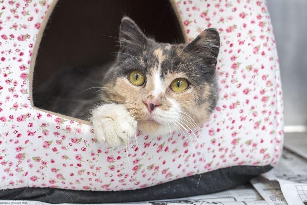 The sweet calico went to a foster home with a caring and patient volunteer who helped her acclimate to being in a home and around people. Briana slowly but surely came out of her shell and thrived in foster care.