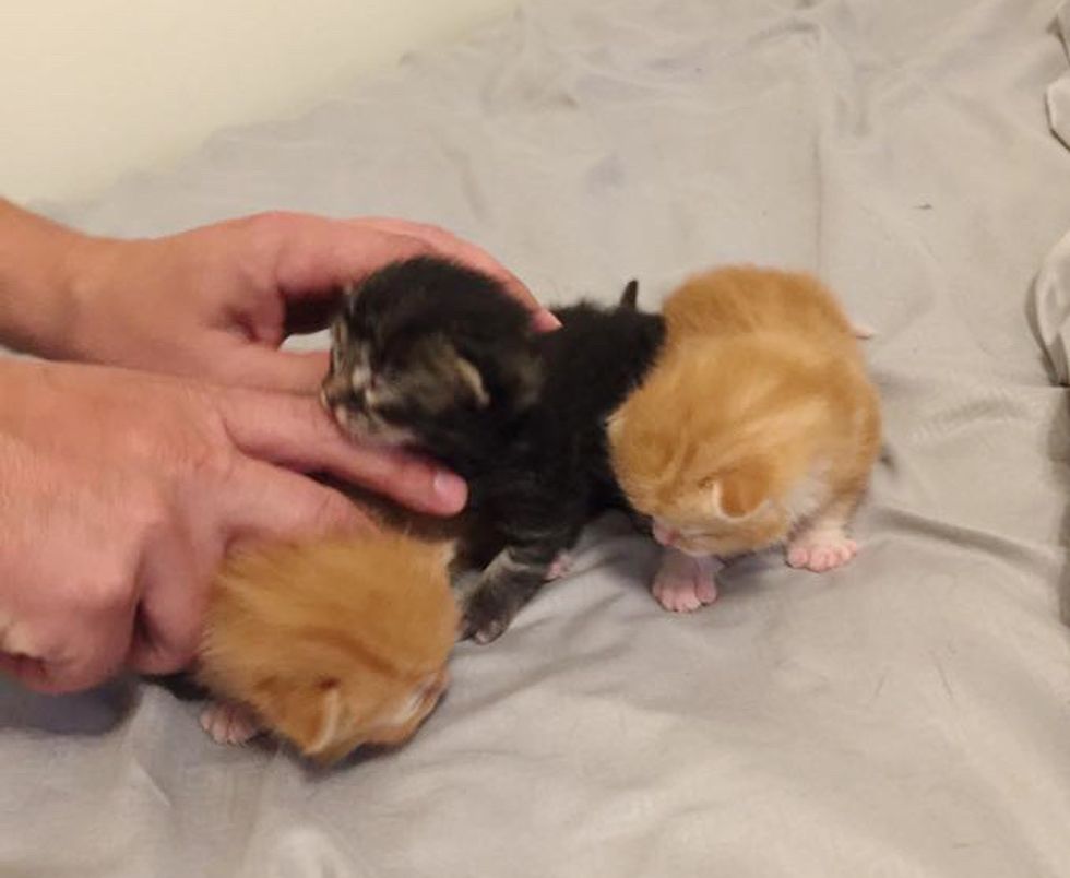 A neighborhood cat ran up to a couple for the love and snuggles on their front porch, but little did they know that the sweet calico didn't come alone.