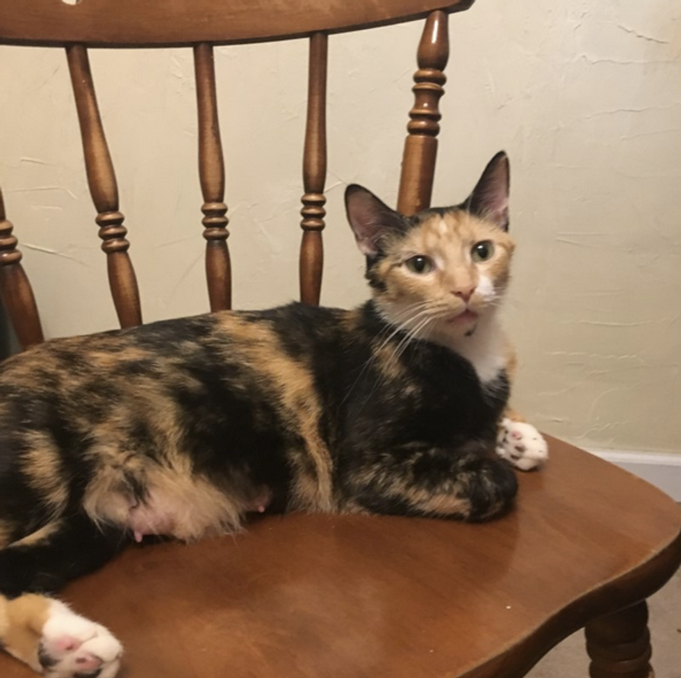 On July 25th she gave birth to five adorable kittens. The sweet calico was very proud.