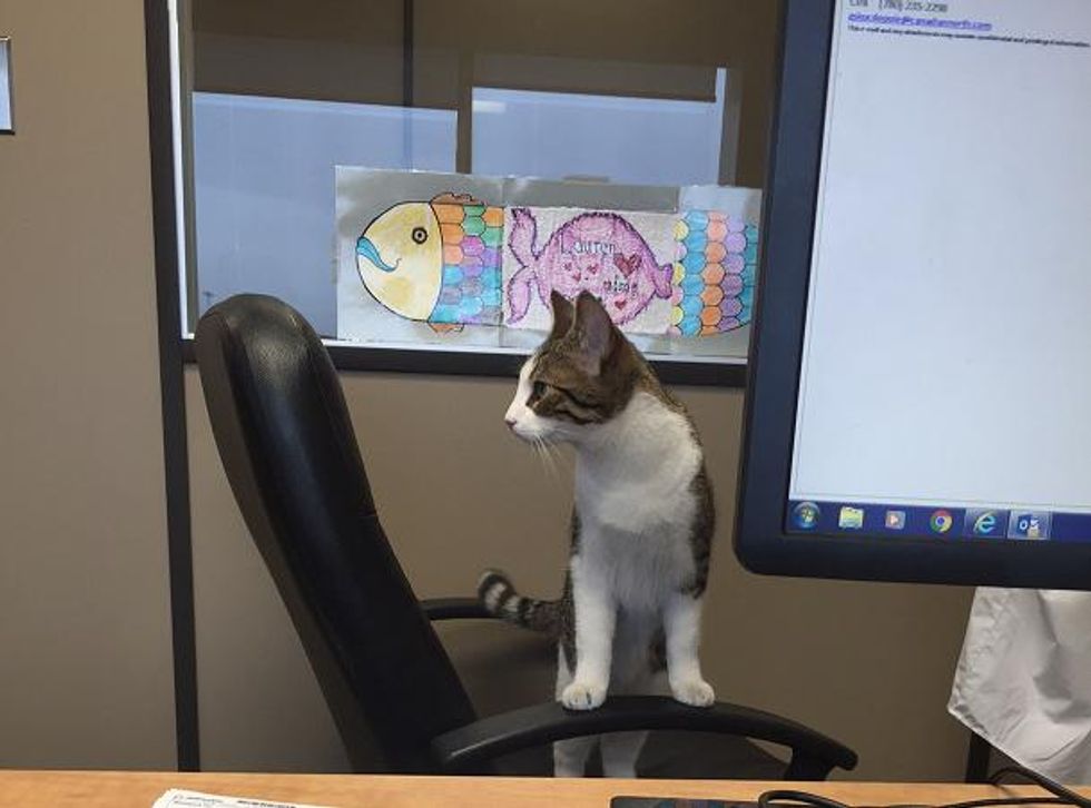 They gave Meow Meow her very own office chair and she started supervising right away.