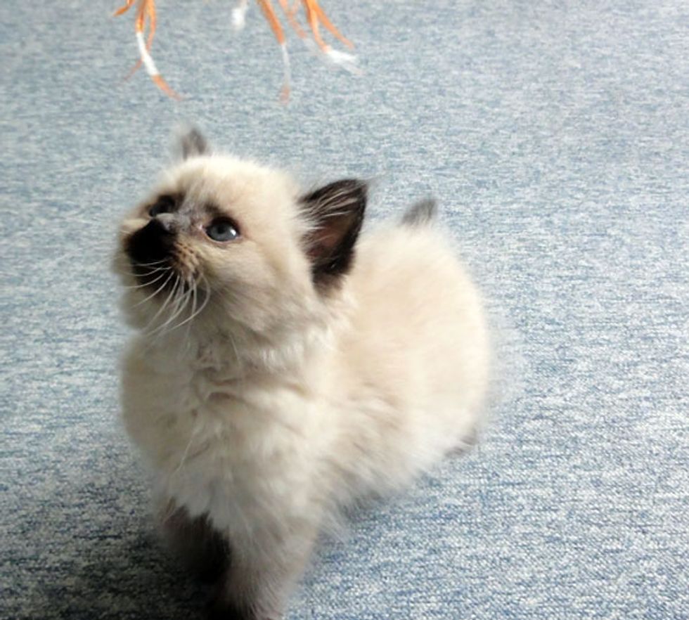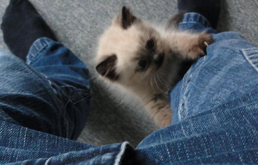 Cappuccino has a pair of eyes that hypnotize. He has turned his human's legs into climbing posts and plays with any toys Erik bought him. The little cutie pie has become Erik's best furry friend.