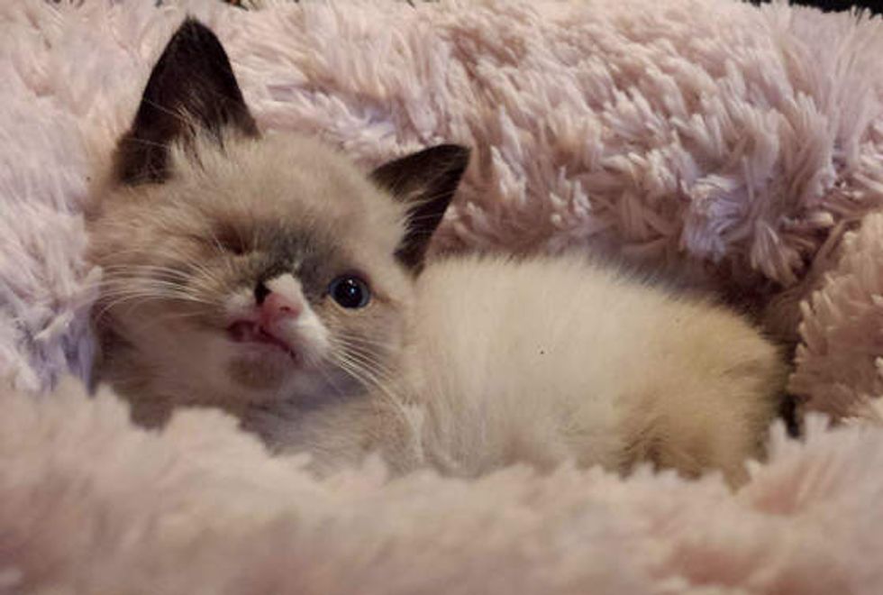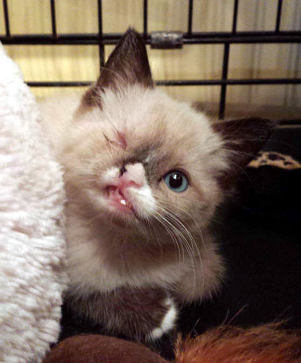 Meet Sir Stuffington, an one eyed kitty who survived a raccoon attack and was saved along with his 2 brothers by a kind person.